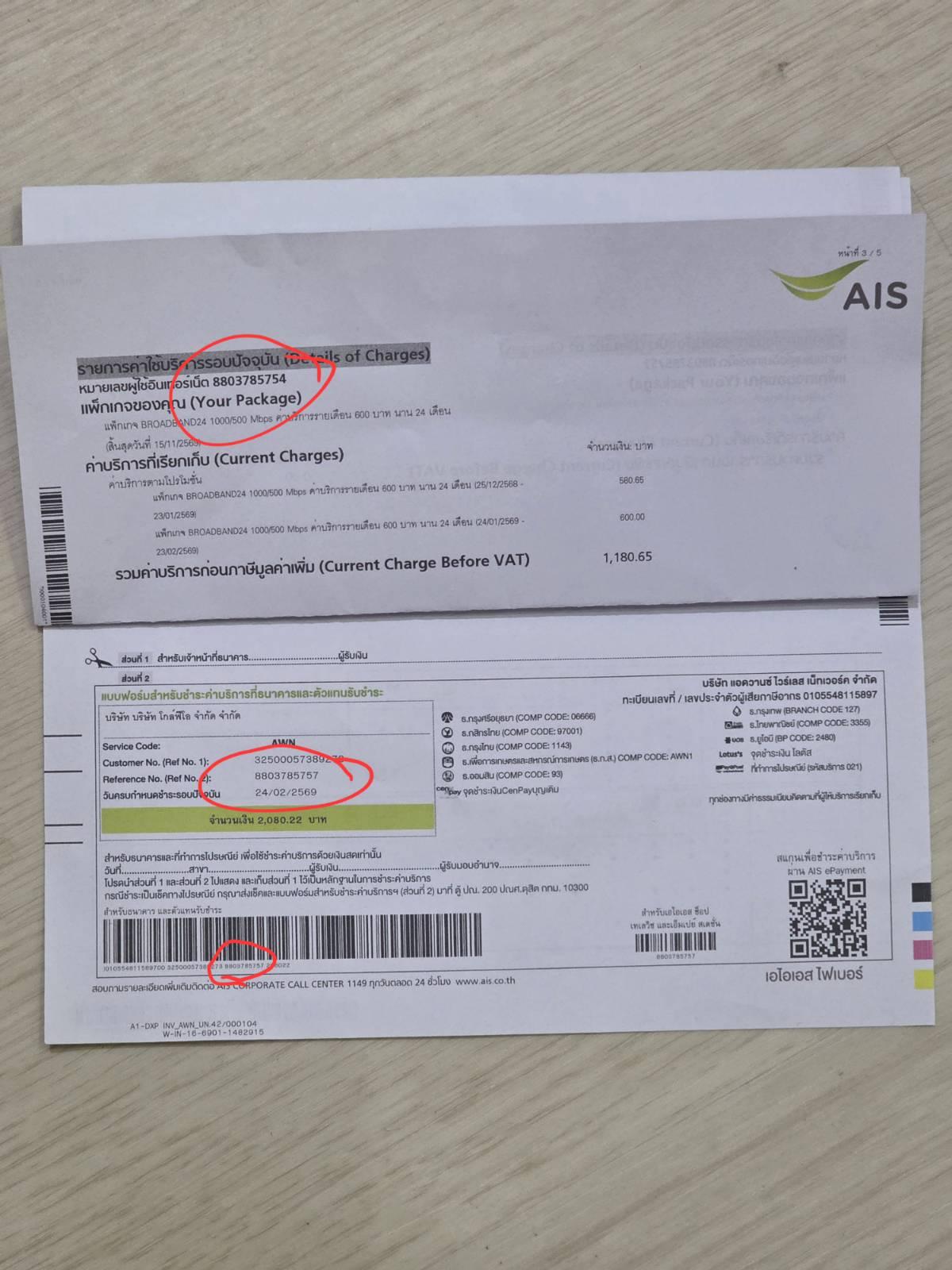 บิล AIS หมายเลขผู้ใช้เน็ต คนละหมายเลขกัน