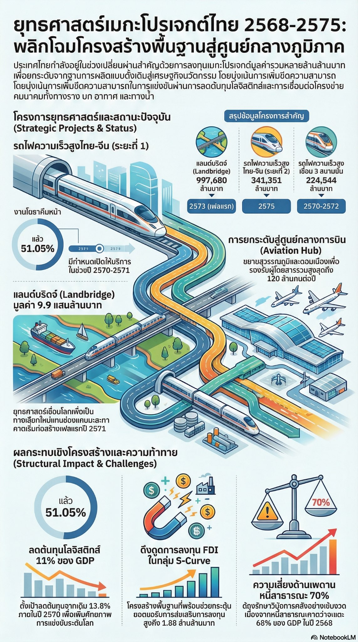 เปิดแผนเมกะโปรเจกต์ไทย สู่ปี 2575: เดิมพันงบล้านล้าน เปลี่ยนโครงสร้างเศรษฐกิจสู่ศูนย์กลางภูมิภาค