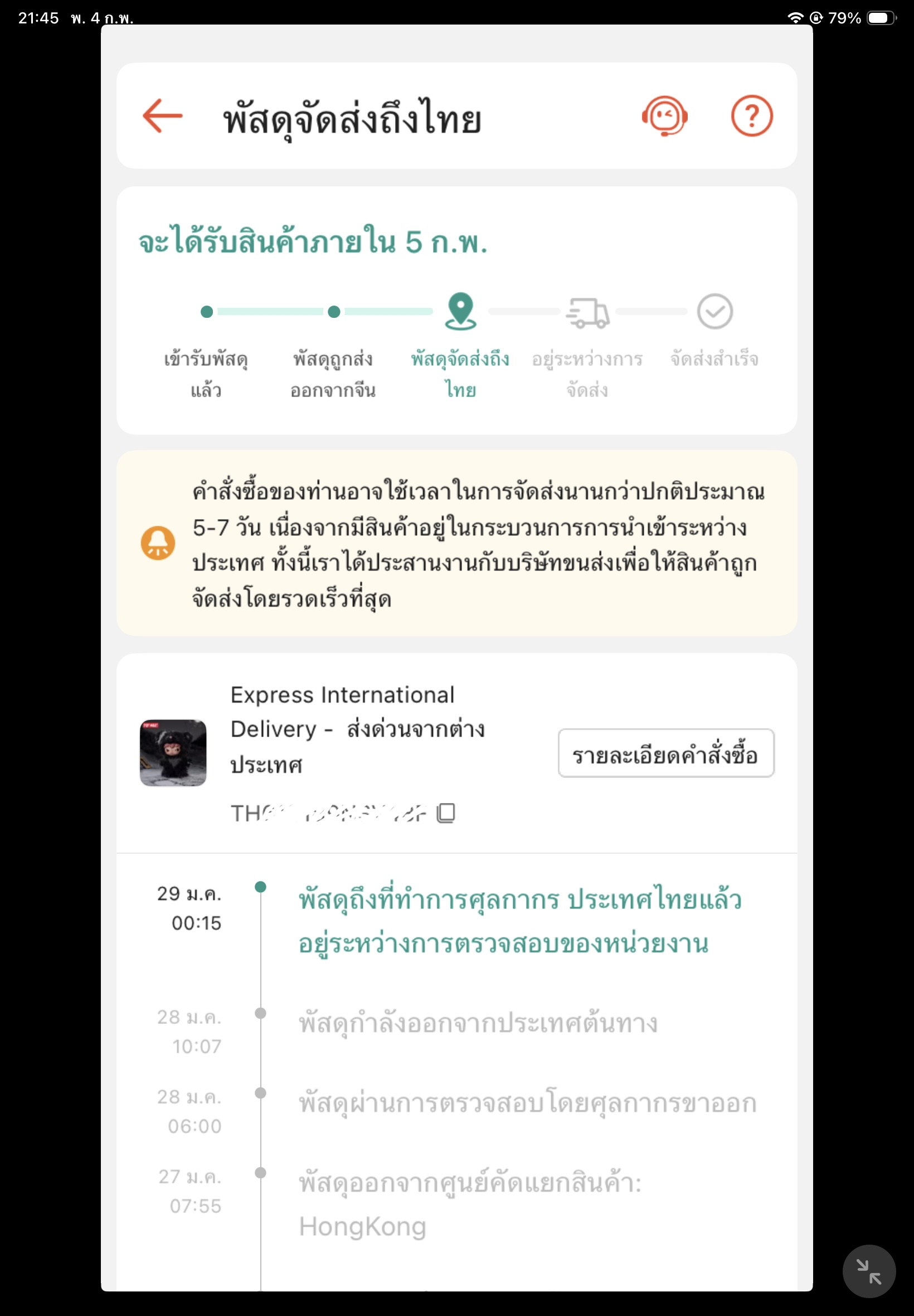 พัสดุออกจากศูนย์คัดแยกสินค้าฮ่องกงมา4วันแล้วทำไมยังไม่ผ่านศุลกากรสักที