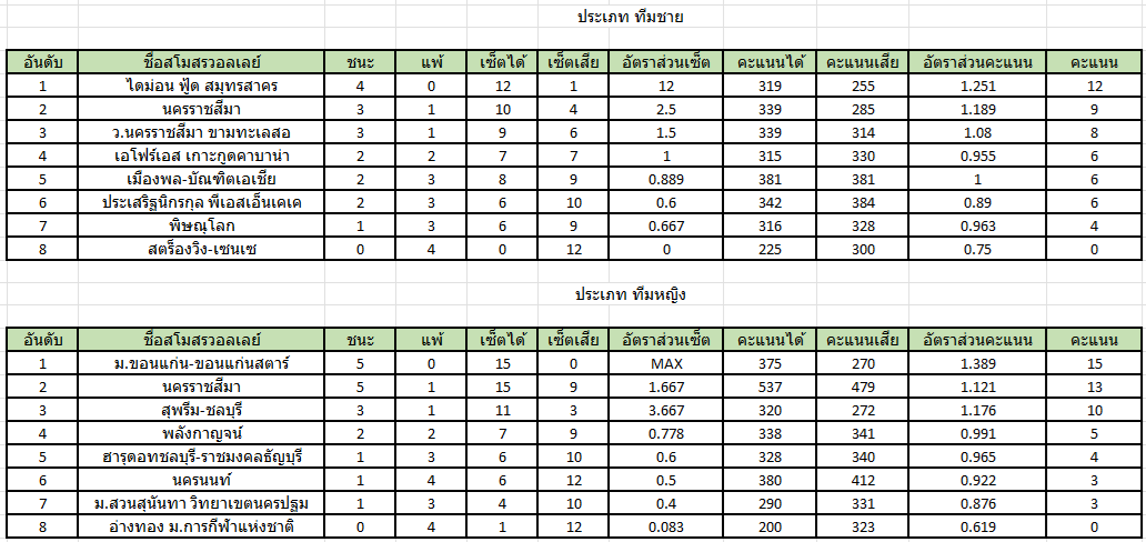 ตารางคะแนน วอลเลย์บอล ไทยลีก ประจำสัปดาห์ที่ 2 วันที่ 29 มกราคม - 1 กุมภาพันธ์ 2569