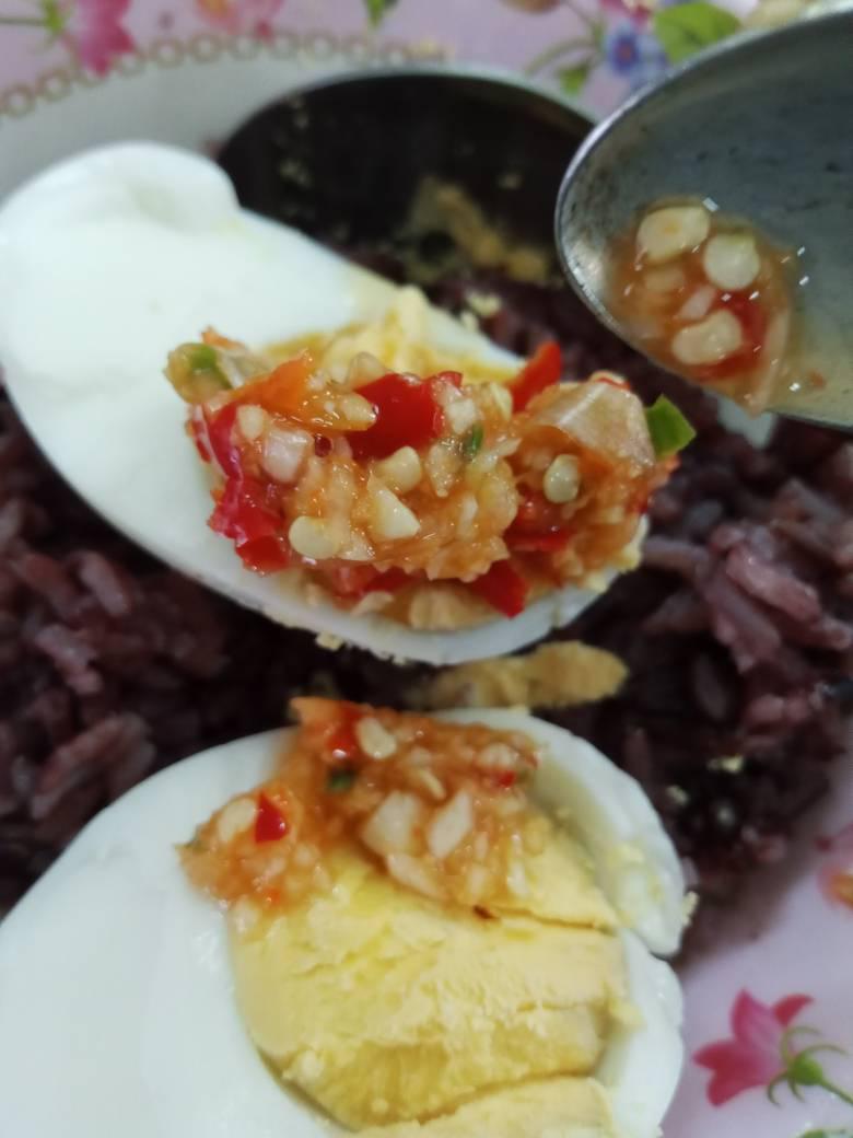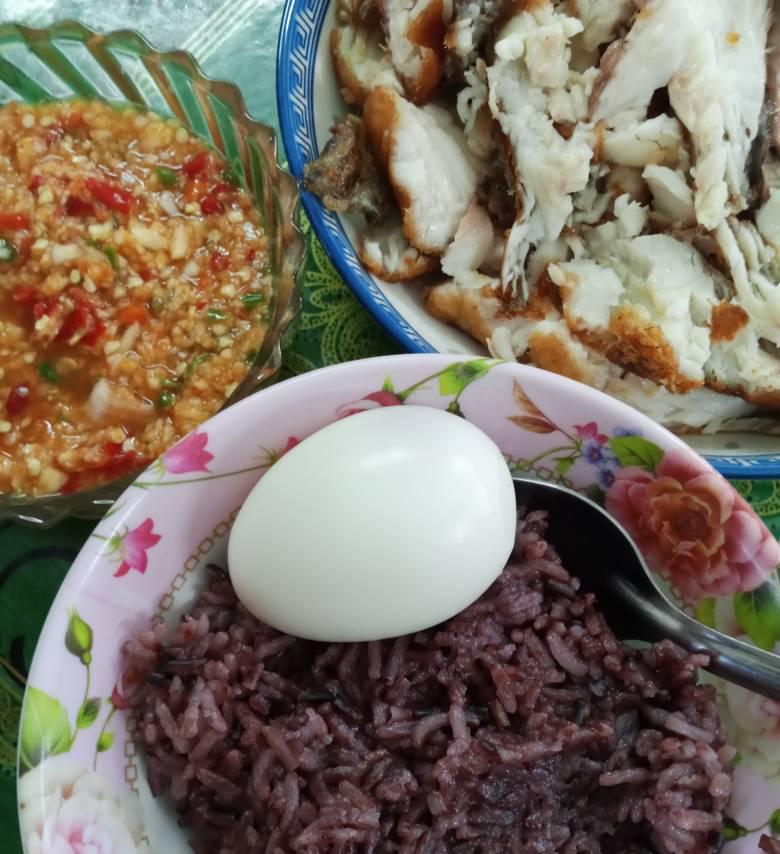 ข้าวปลาแกะ พริกเกลือ และ ไข่ต้ม