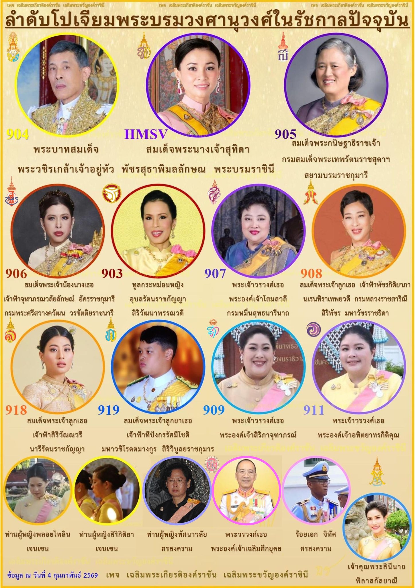 💛💜🙏 ลำดับโปเจียมของพระบรมวงศานุวงศ์ในรัชกาลปัจจุบัน (ข้อมูลล่าสุด ณ ปีพุทธศักราช ๒๕๖๙)