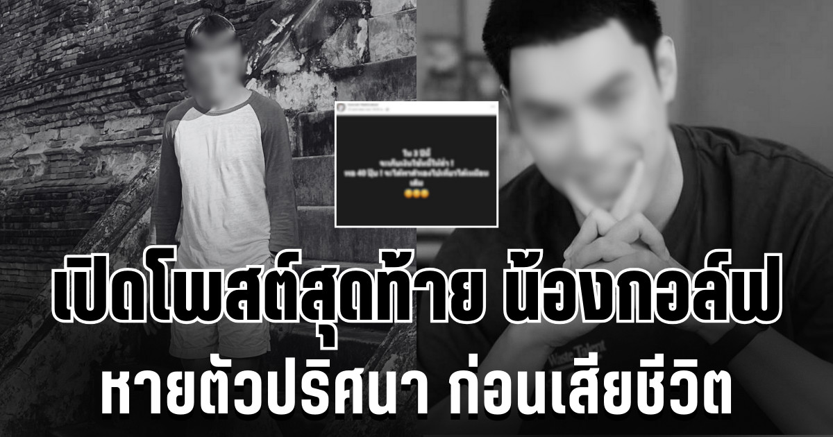เหมือนเป็นลาง เปิดโพสต์สุดท้าย น้องกอล์ฟ หายตัวปริศนา ก่อนเสียชีวิต