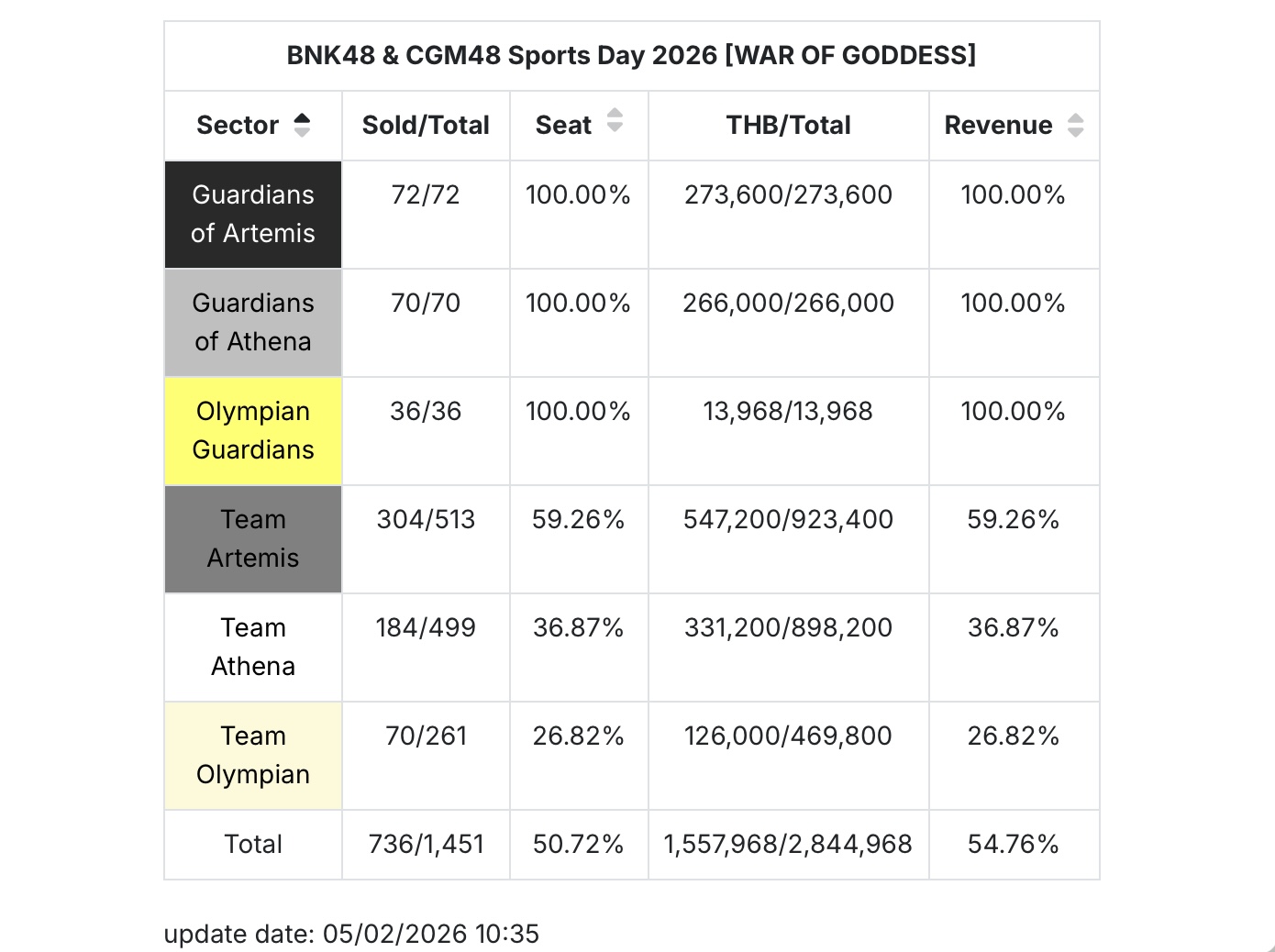 # UPDATE ยอดขายบัตร งานกีฬาสี BNK48 & CGM48 Sports Day 2026: War of Goddess