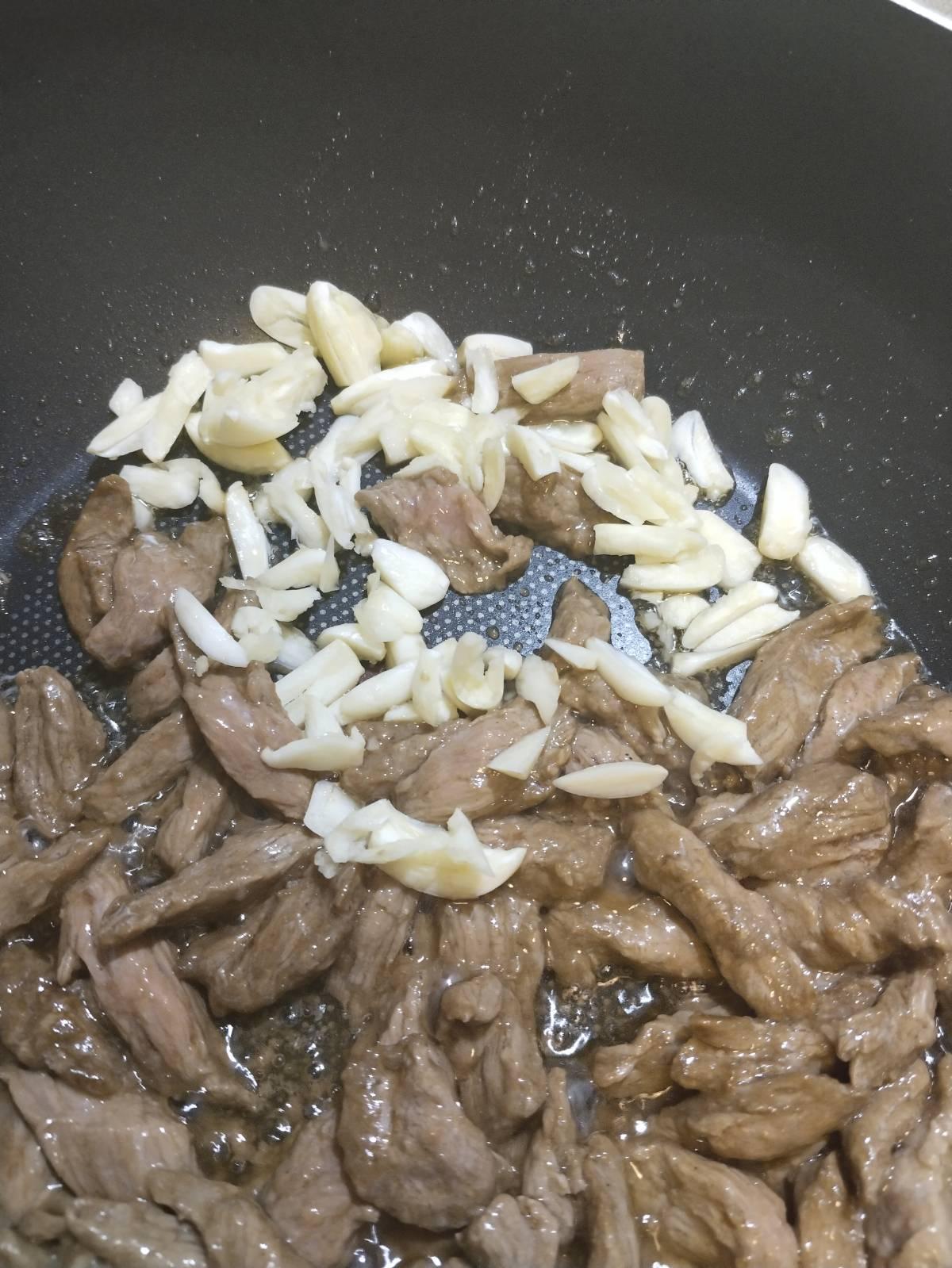 เจียวกระเทียม ผัดเนื้อหมักกับน้ำมันงา