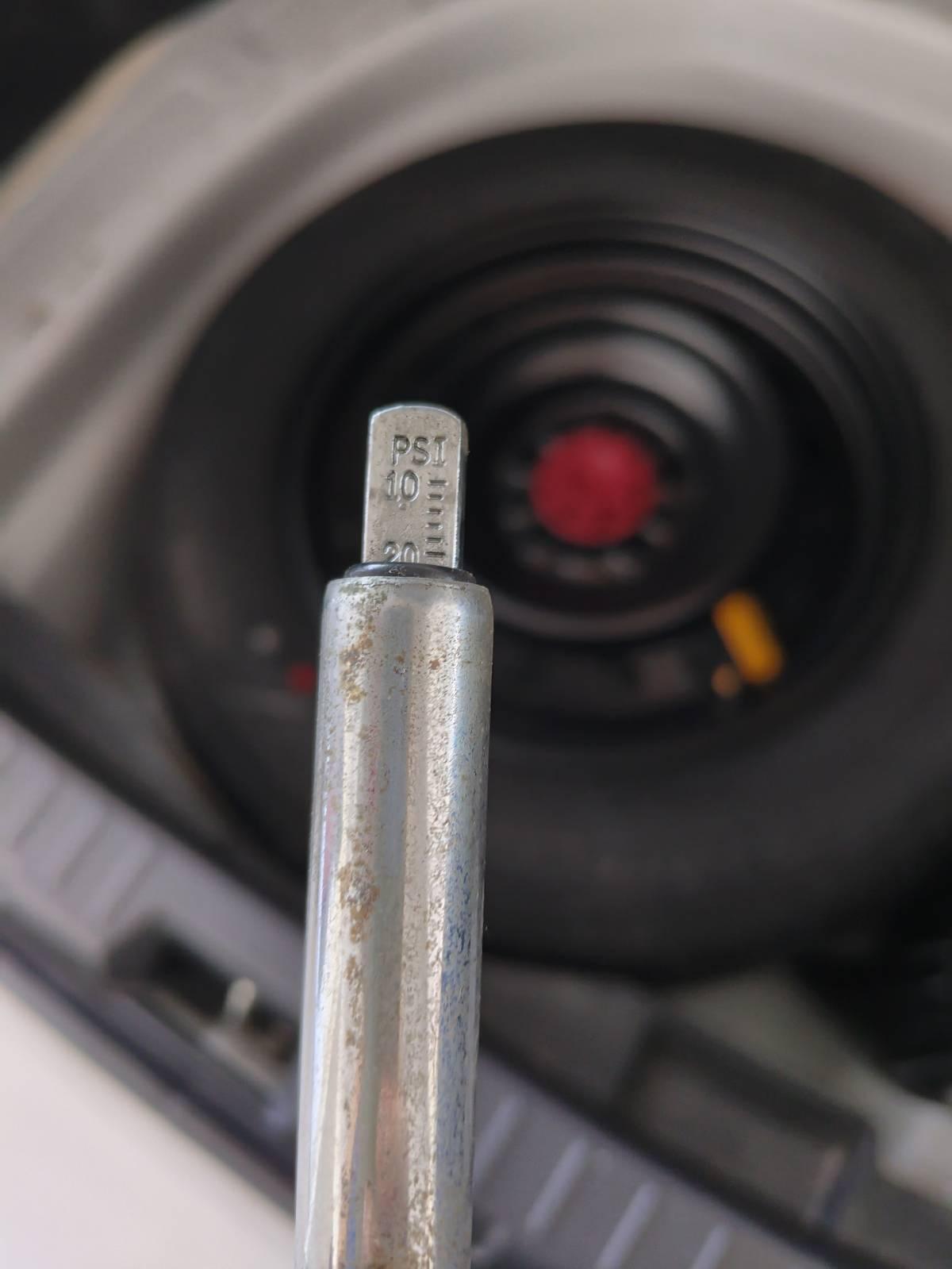 ถึงบ้านเคลียร์ท้ายรถ ยางอะไหล่มีลมน้อยมาก วัดได้ 20