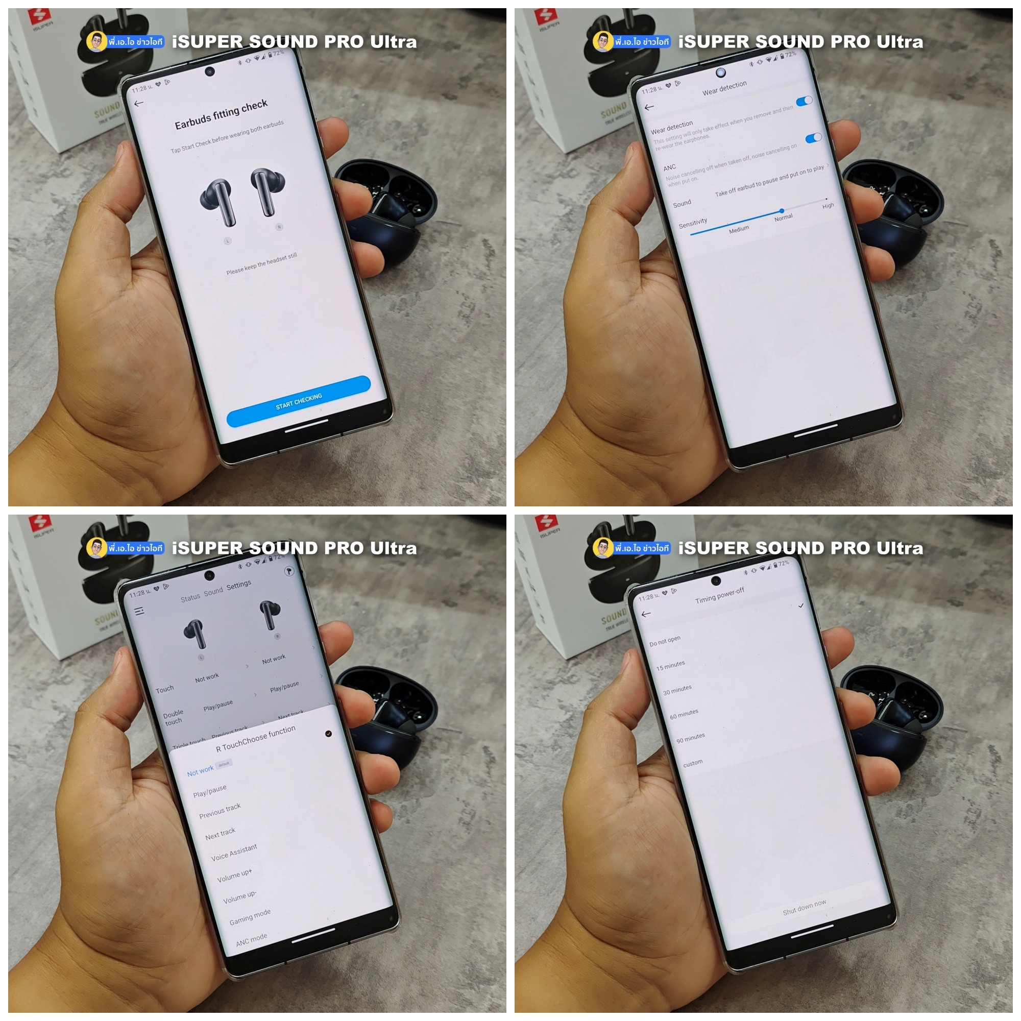 ก่อนจะฟังเราจะต้องต่อแอปก่อนนะครับ iSuper Play ก็ยังเป็นแอปที่จัดการหูฟังของ iSuper ทุกรุ่นอยู่ ยังไม่เปลี่ยนไปไหน แต่จะมีการเพิ่มหูฟังเข้ามารองรับเรื่อยๆ ถ้าใครไม่เจอหูฟังรุ่นใหม่ๆ ให้ไปอัพเดตแอปก่อนนะครับ อีกอย่างรุ่นนี้รองรับ Google Fast pair ด้วย เวลาที่เราใช้งานมือถือเครื่องอื่นและใช้ Google account เดียวกัน ก็สามารถเชื่อมต่อฟังแบบรวดเร็วได้เลยครับ หลังจากที่เชื่อมต่อหูฟังกับแอปแล้วก็จะเจอ