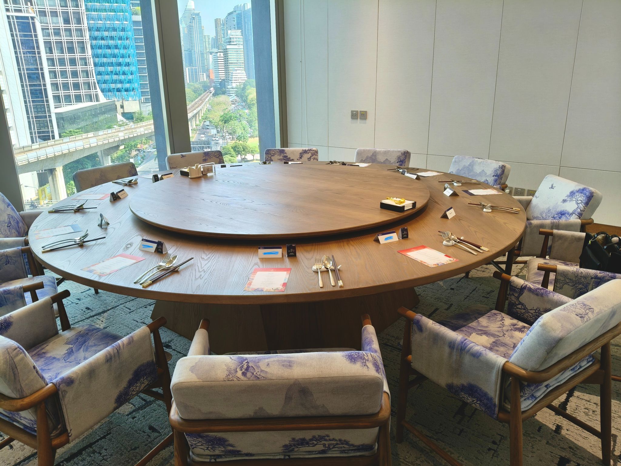 > มาถึงงาน มีการลงทะเบียน มีเจ้าหน้าที่พาชม และแนะนำบริการด้สนต่าง ๆ จากนั้น พาไปห้องอาหารขนาดไม่ใหญ่มาก ภายในห้องมีโต๊ะอาหารขนาด 12 ที่นั่ง มีป้ายชื่อที่นั่งของแต่ละคนวางไว้