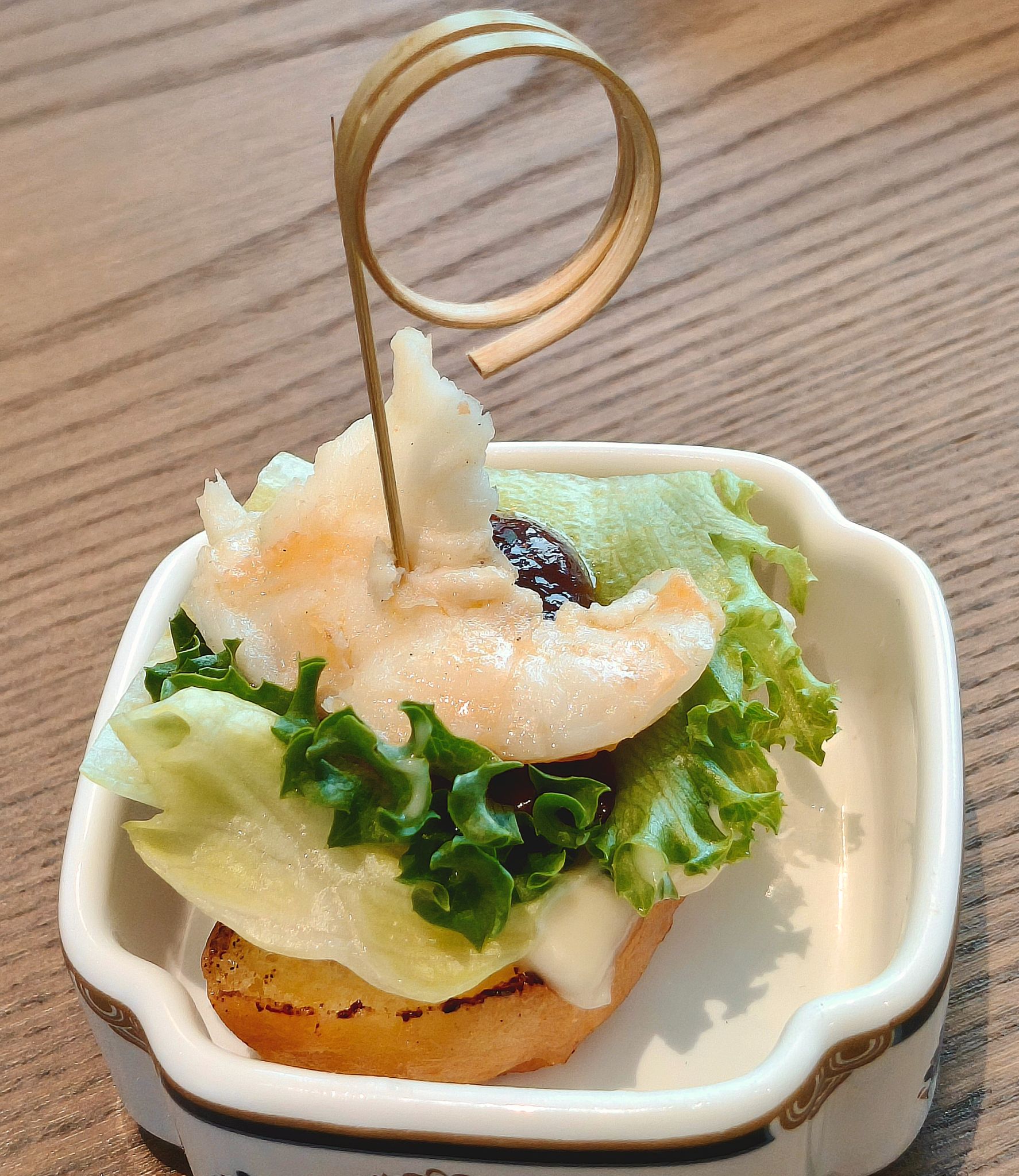 แซนวิชกุ้งก้ามกรามกาฬสินธ์ุและซอสเขียวหวาน