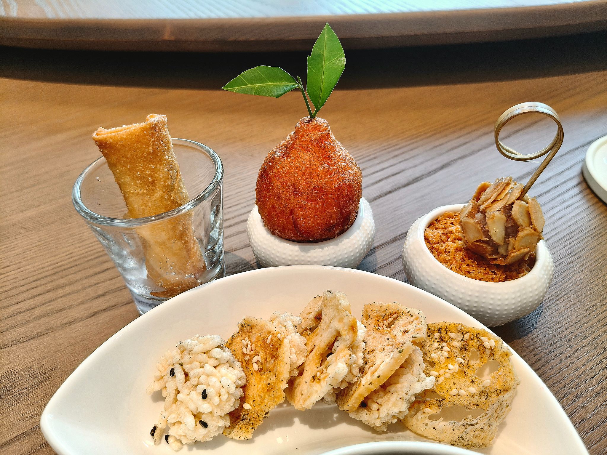 ขนมผักกาดเจี๋ยนซอสเอ็กซ์โอ และปอเปี๊ยะกุ้งก้ามกรามกาฬสินธุ์