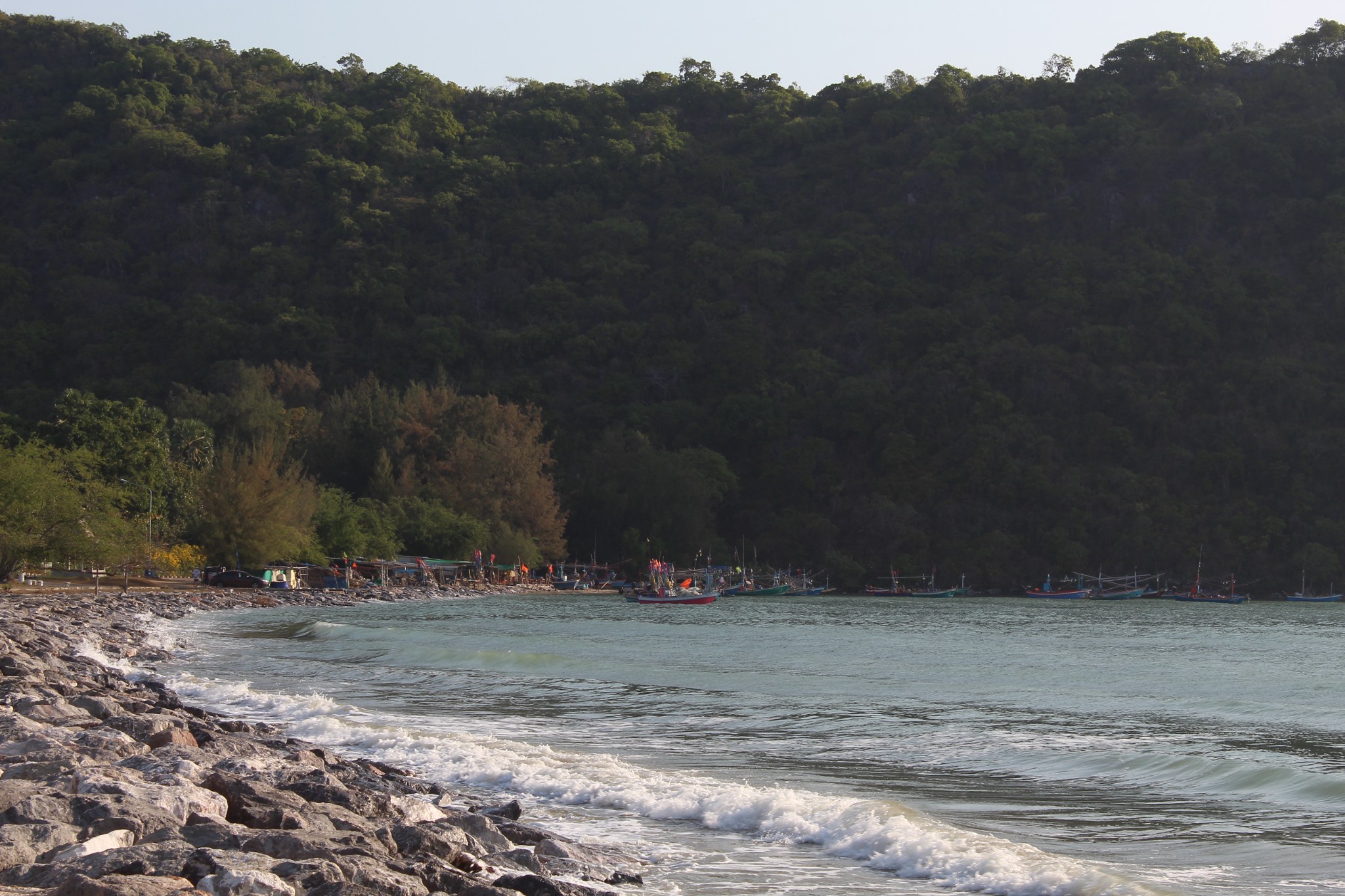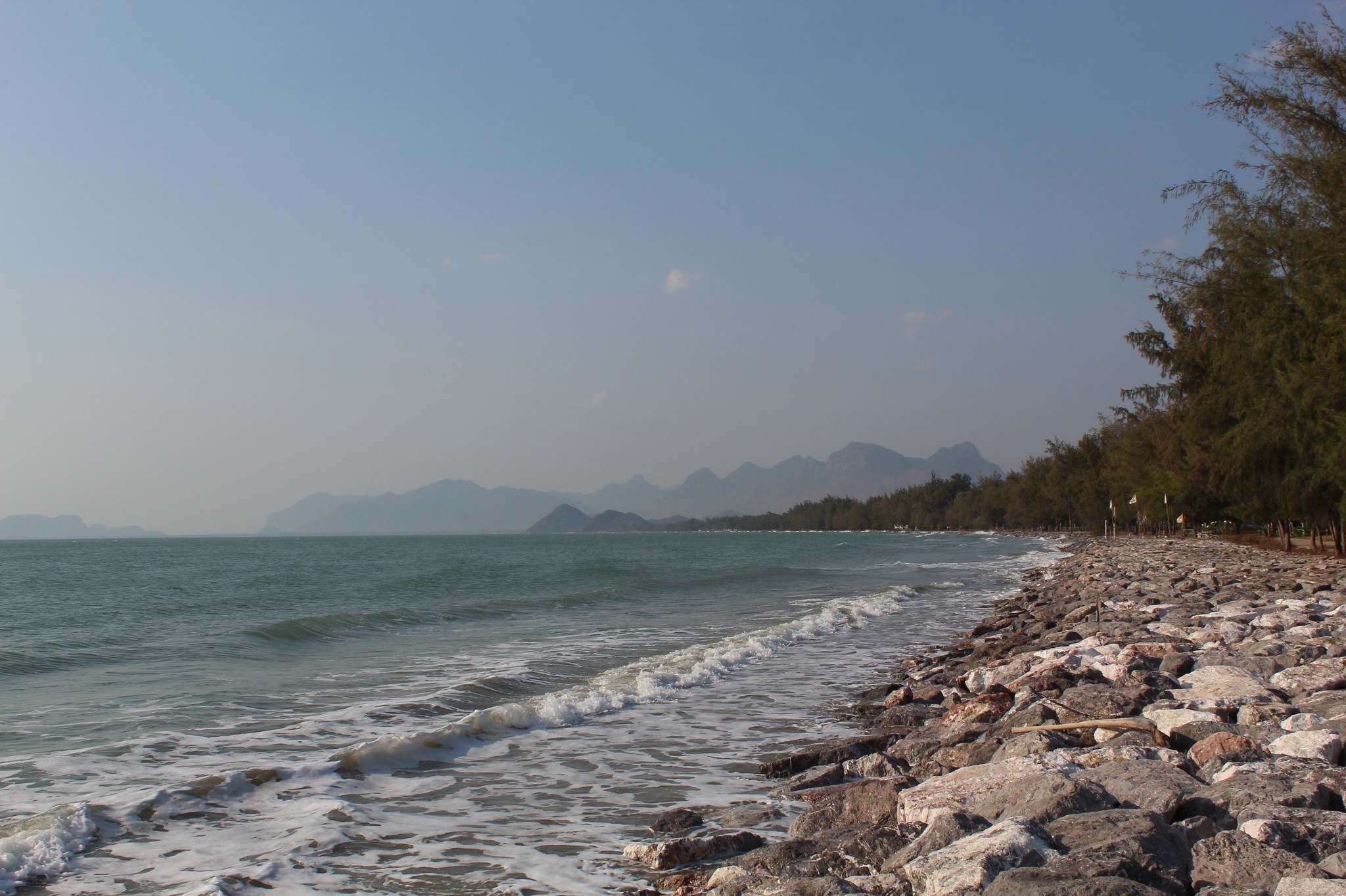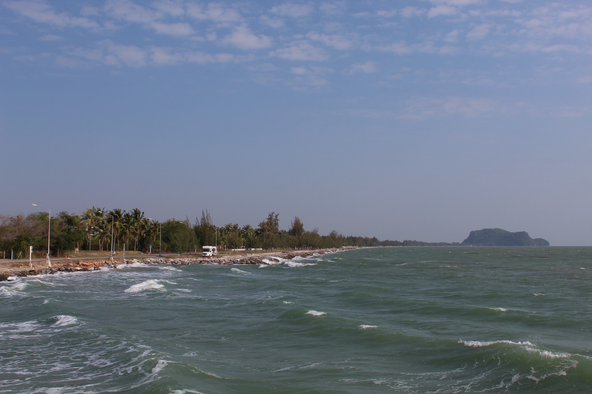 บิดล่องมาตามทางเรื่อย ๆ ก่อนจะมาเลี้ยวซ้ายที่เขากะโหลก บิดต่อไปอีกเล็กน้อย ในที่สุดผมก็มาถึงจุดหมายแรกและจุดหมายหลักของทริปนี้ ทะเลปราณบุรี บริเวณหาดหลังเขากะโหลกนี่เอง