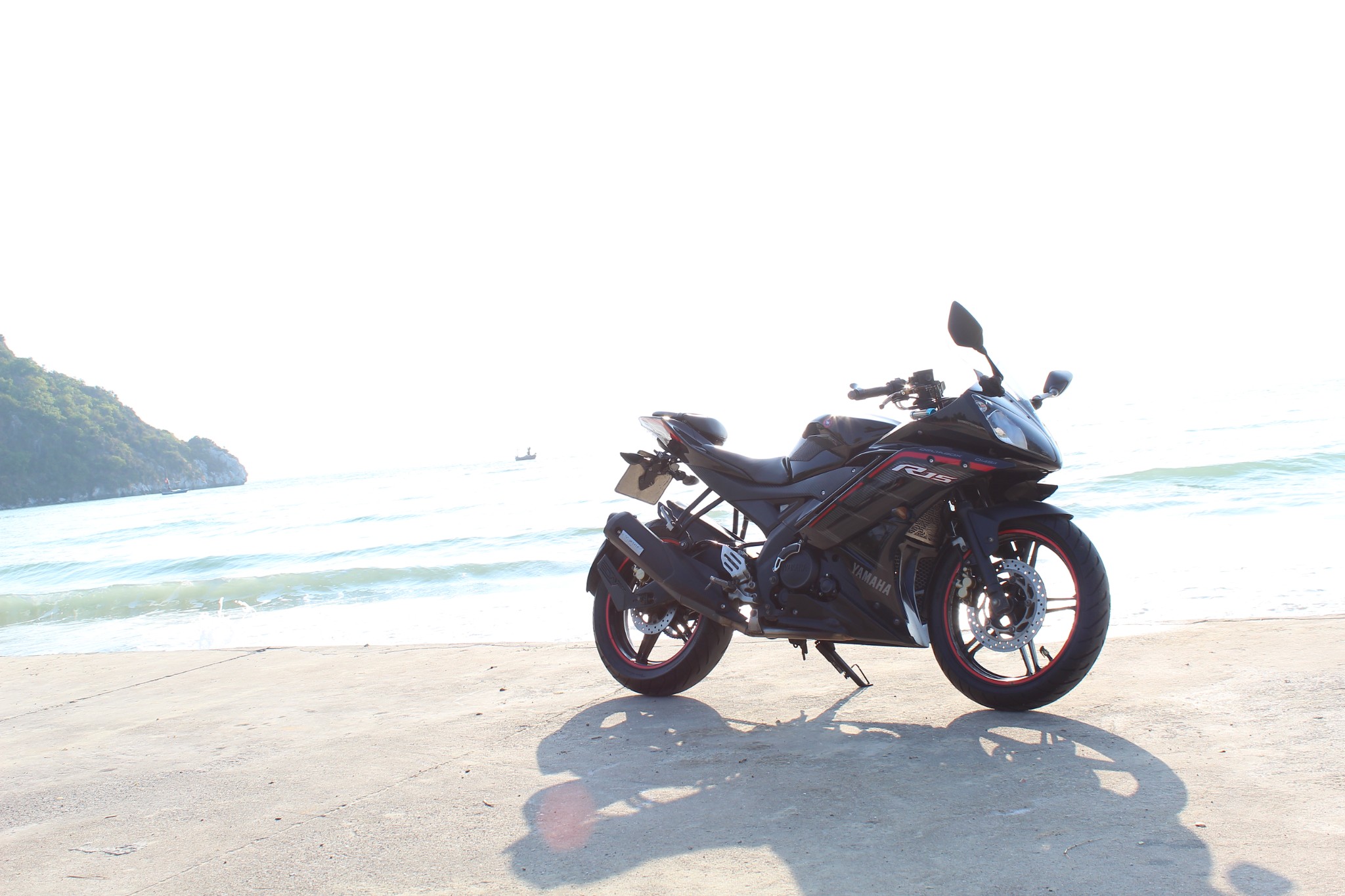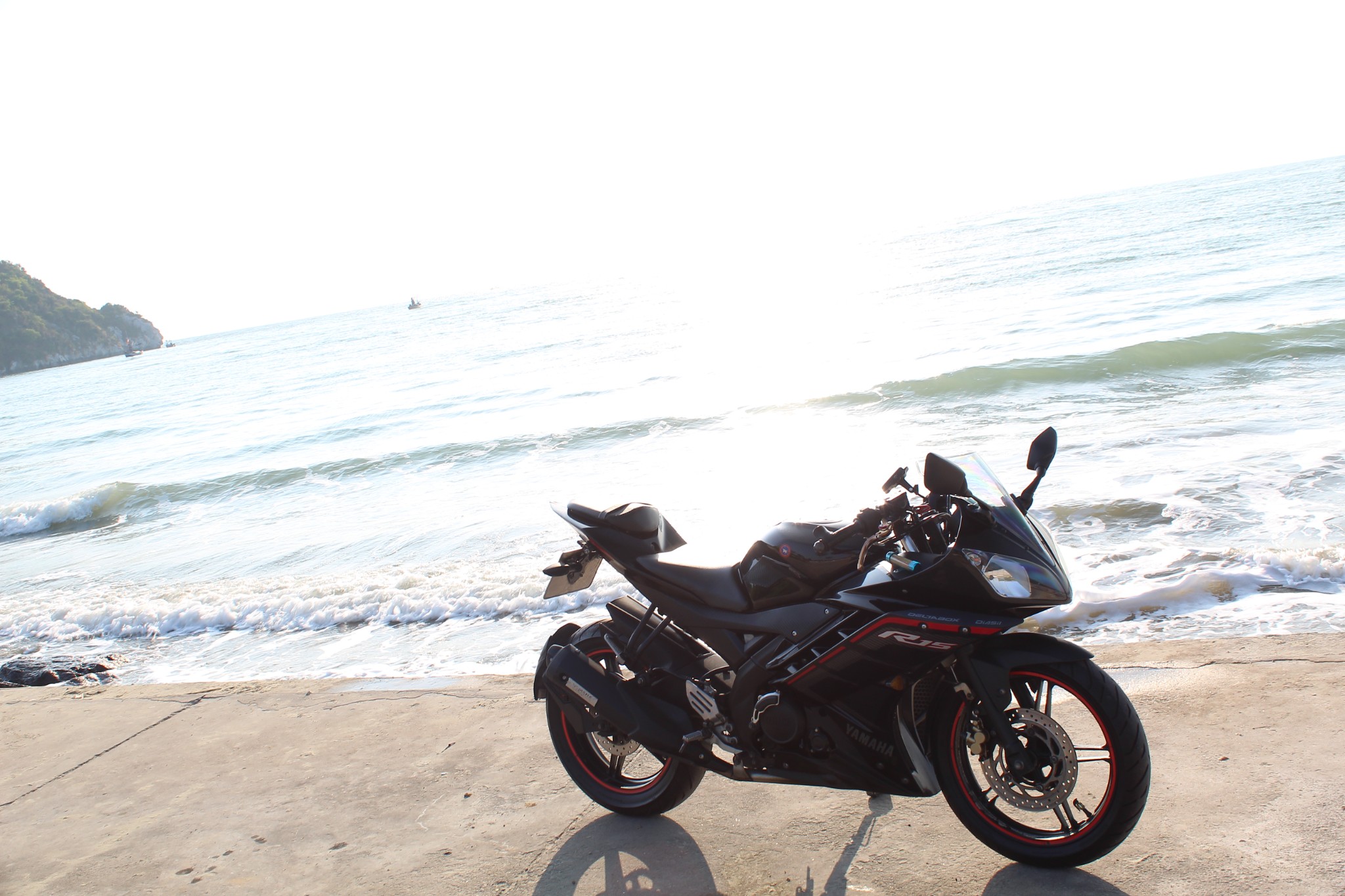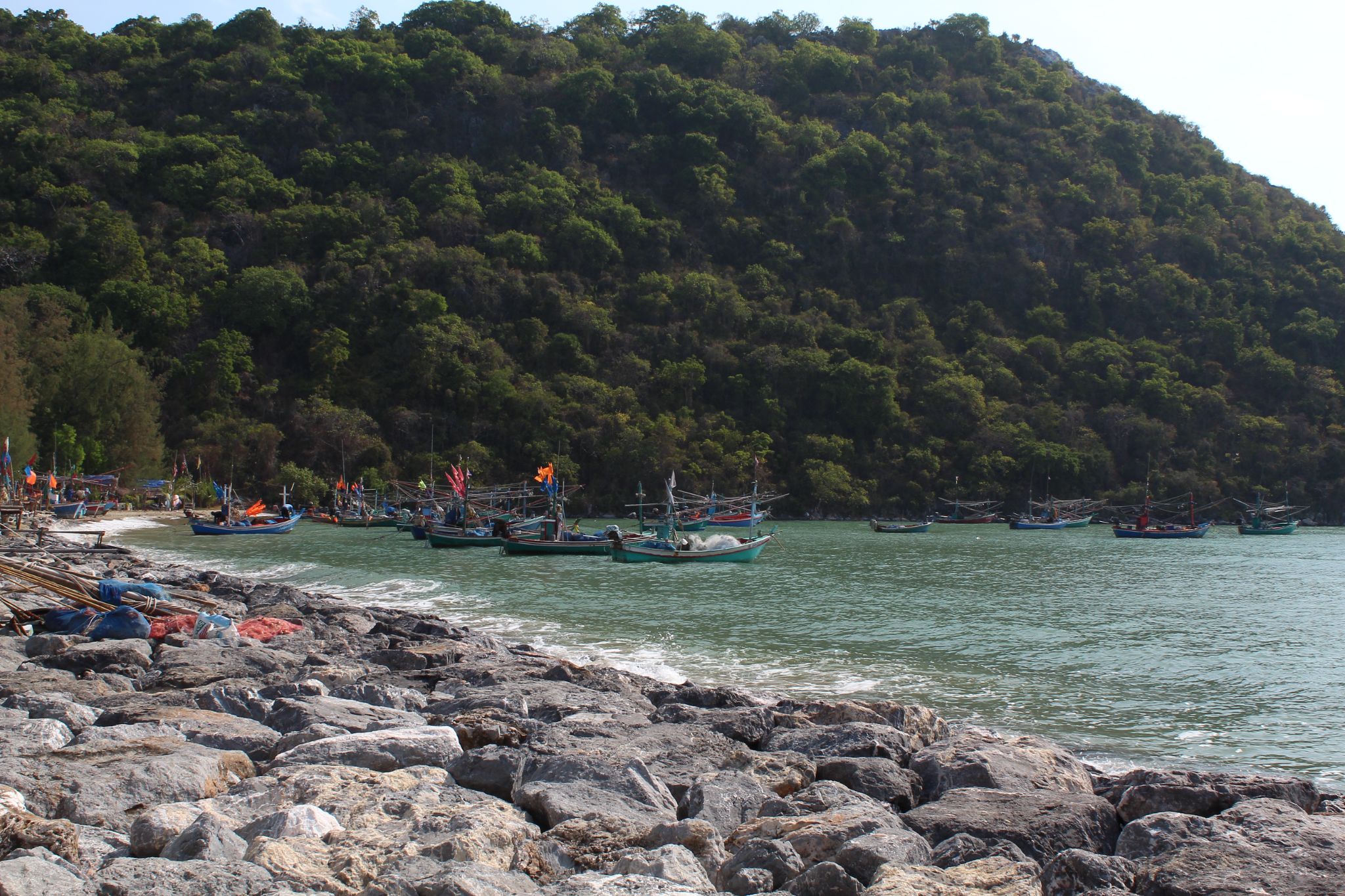 บิดล่องมาตามทางเรื่อย ๆ ก่อนจะมาเลี้ยวซ้ายที่เขากะโหลก บิดต่อไปอีกเล็กน้อย ในที่สุดผมก็มาถึงจุดหมายแรกและจุดหมายหลักของทริปนี้ ทะเลปราณบุรี บริเวณหาดหลังเขากะโหลกนี่เอง