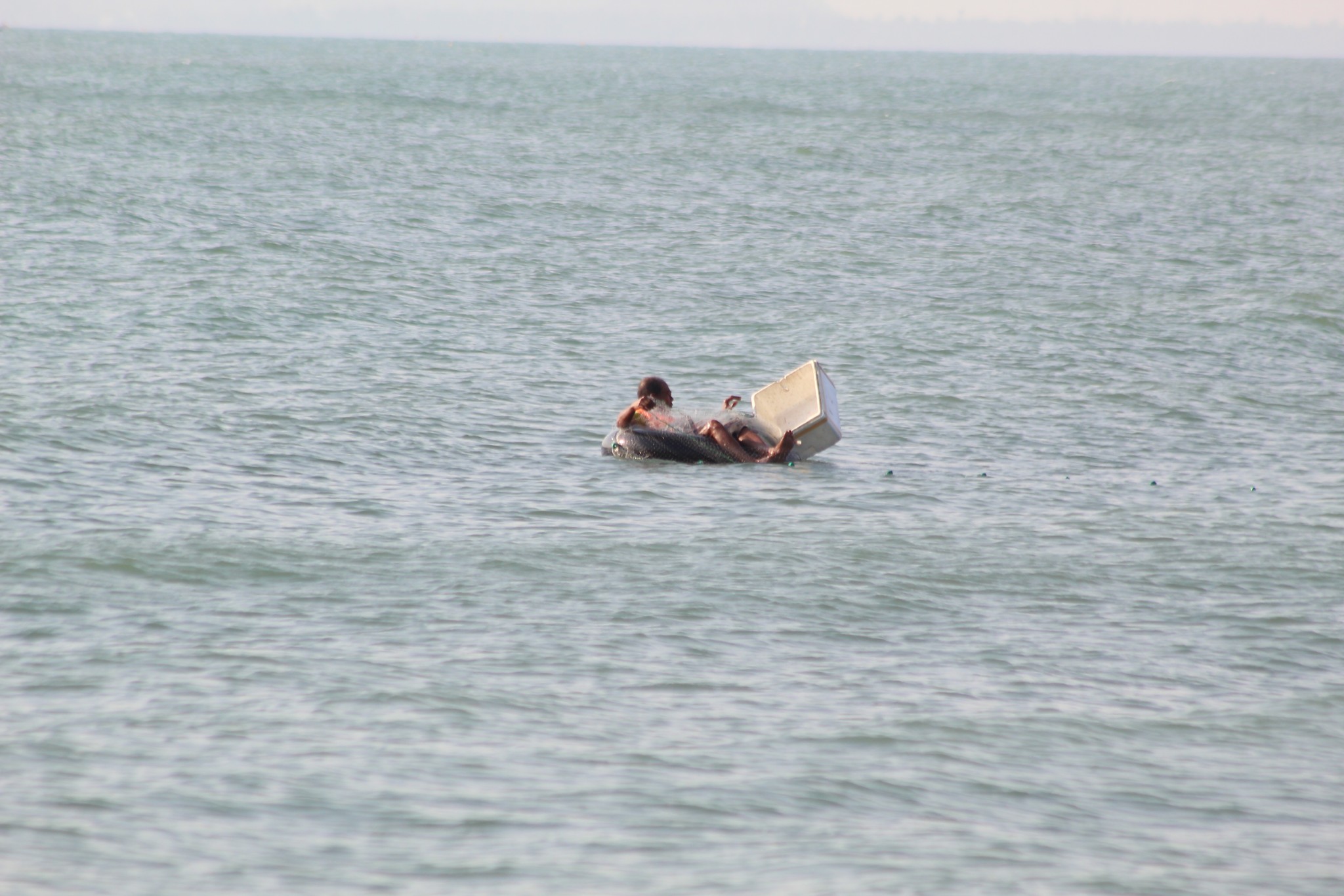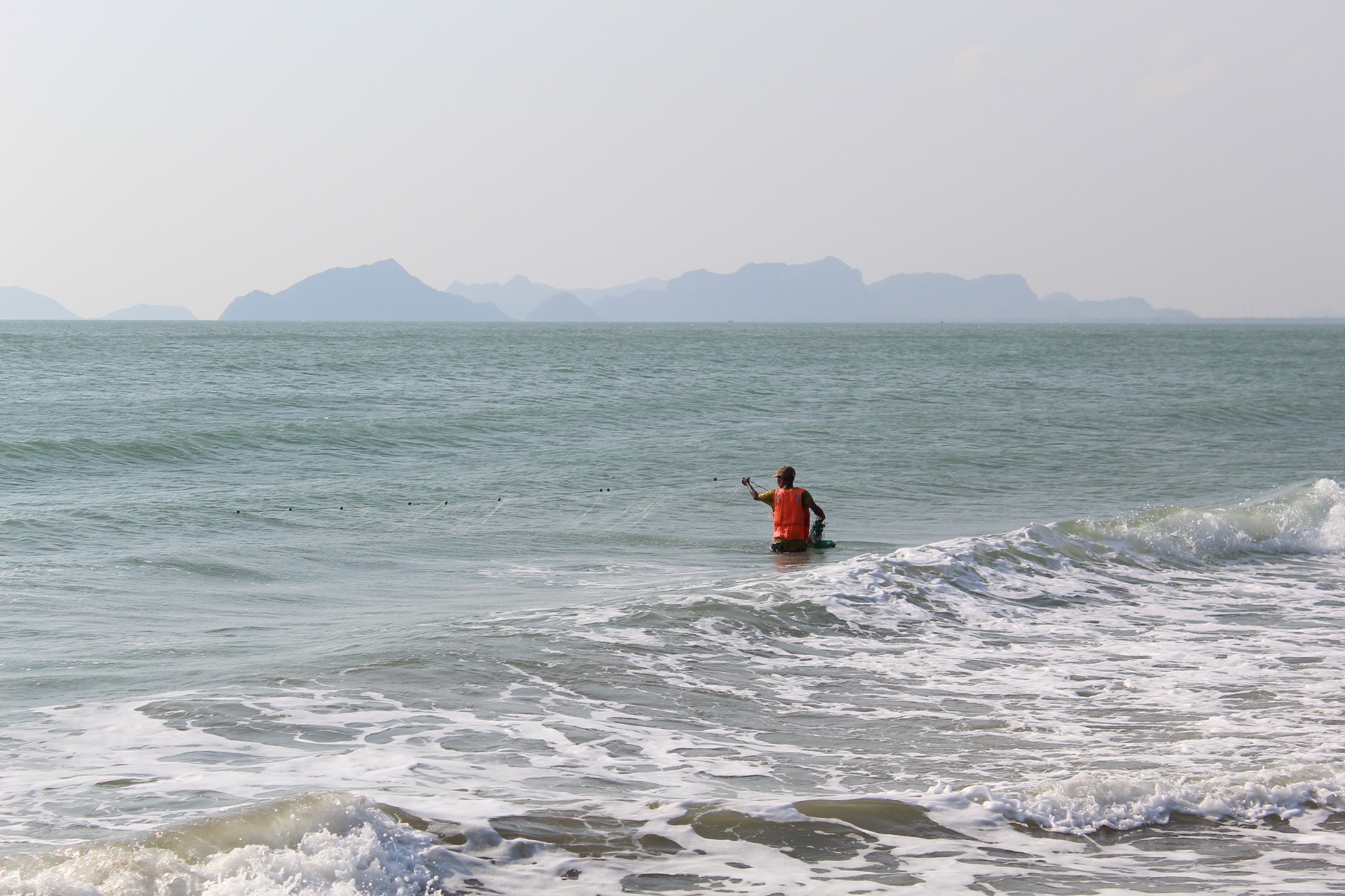 คุณลุงคนเดิม แค่ย้ายมาเก็บข่ายบริเวณใกล้ฝั่ง ก็เลยไม่ได้นั่งห่วงยางแแกไป