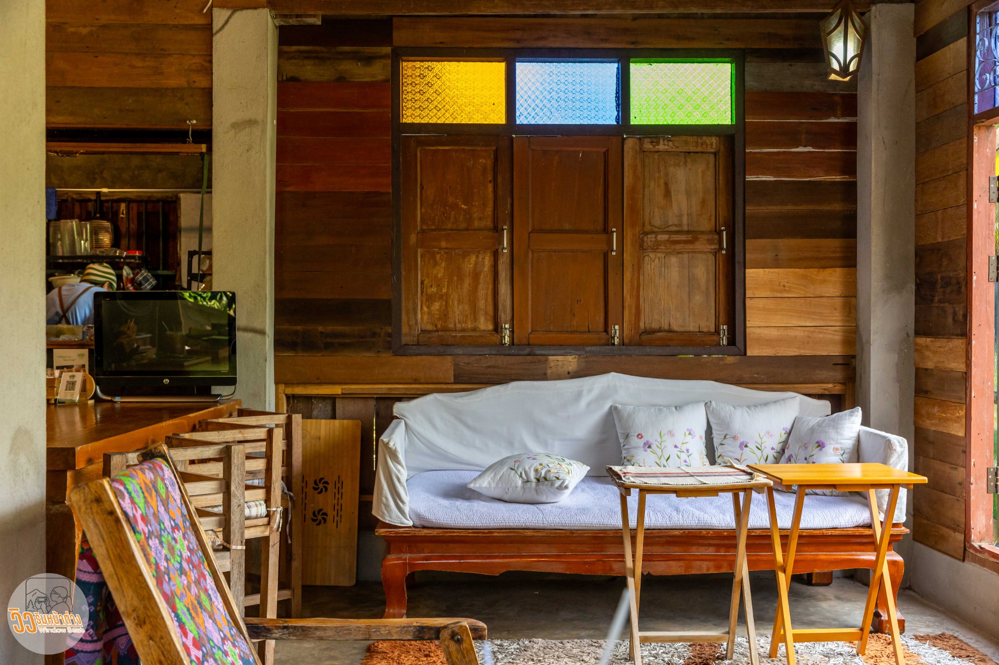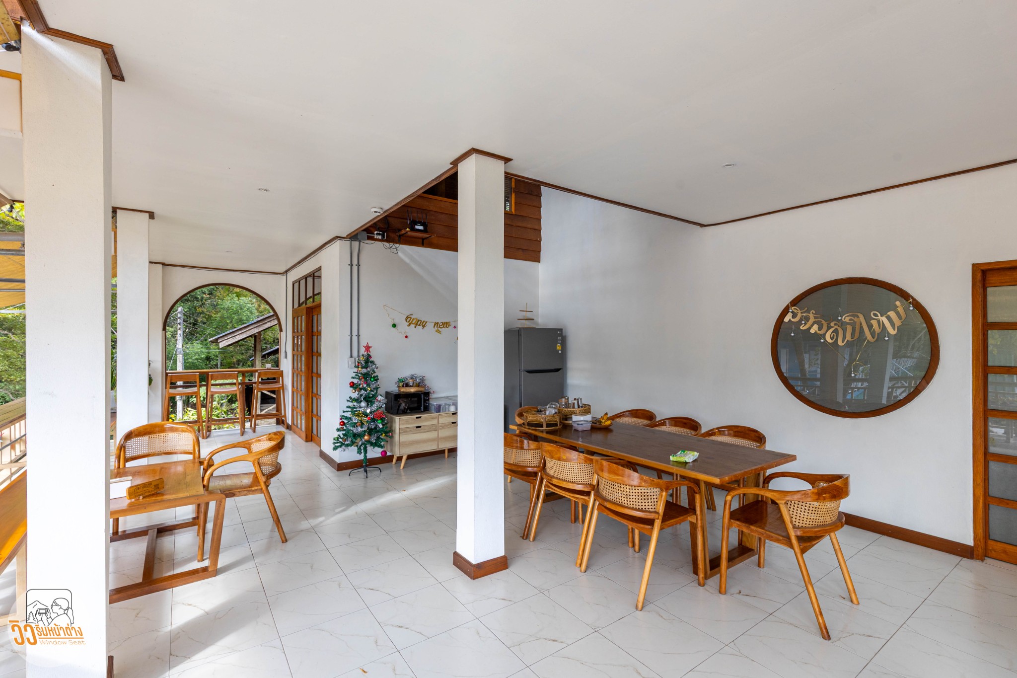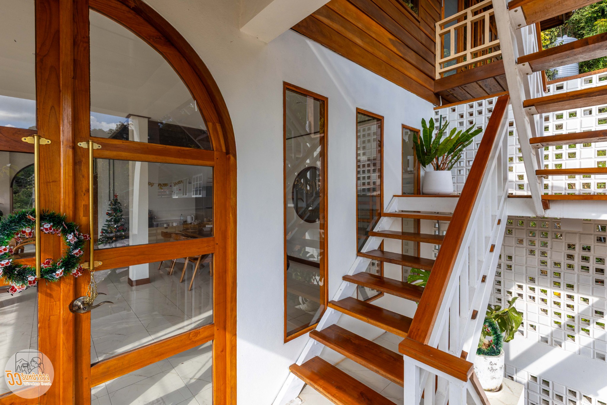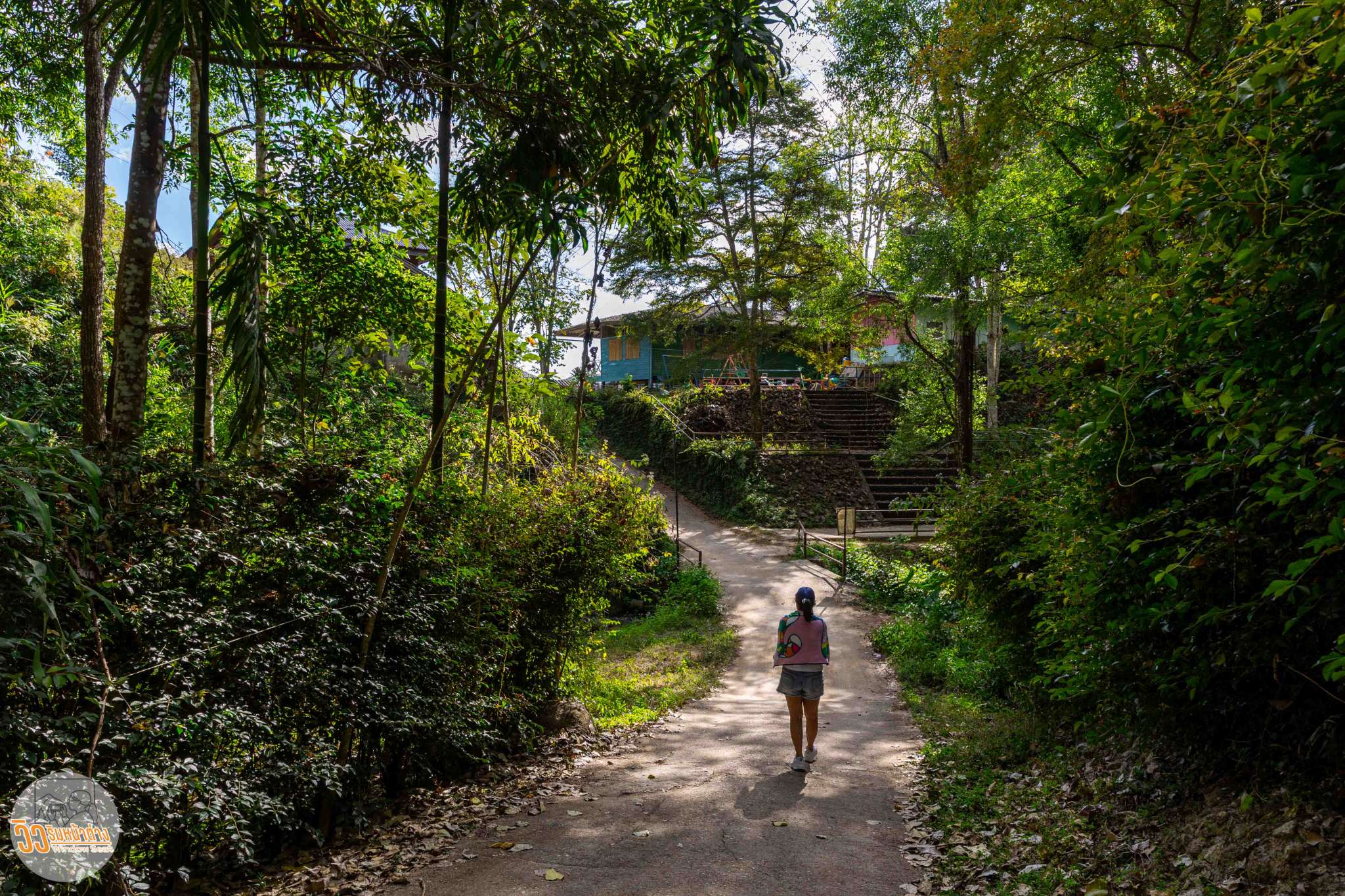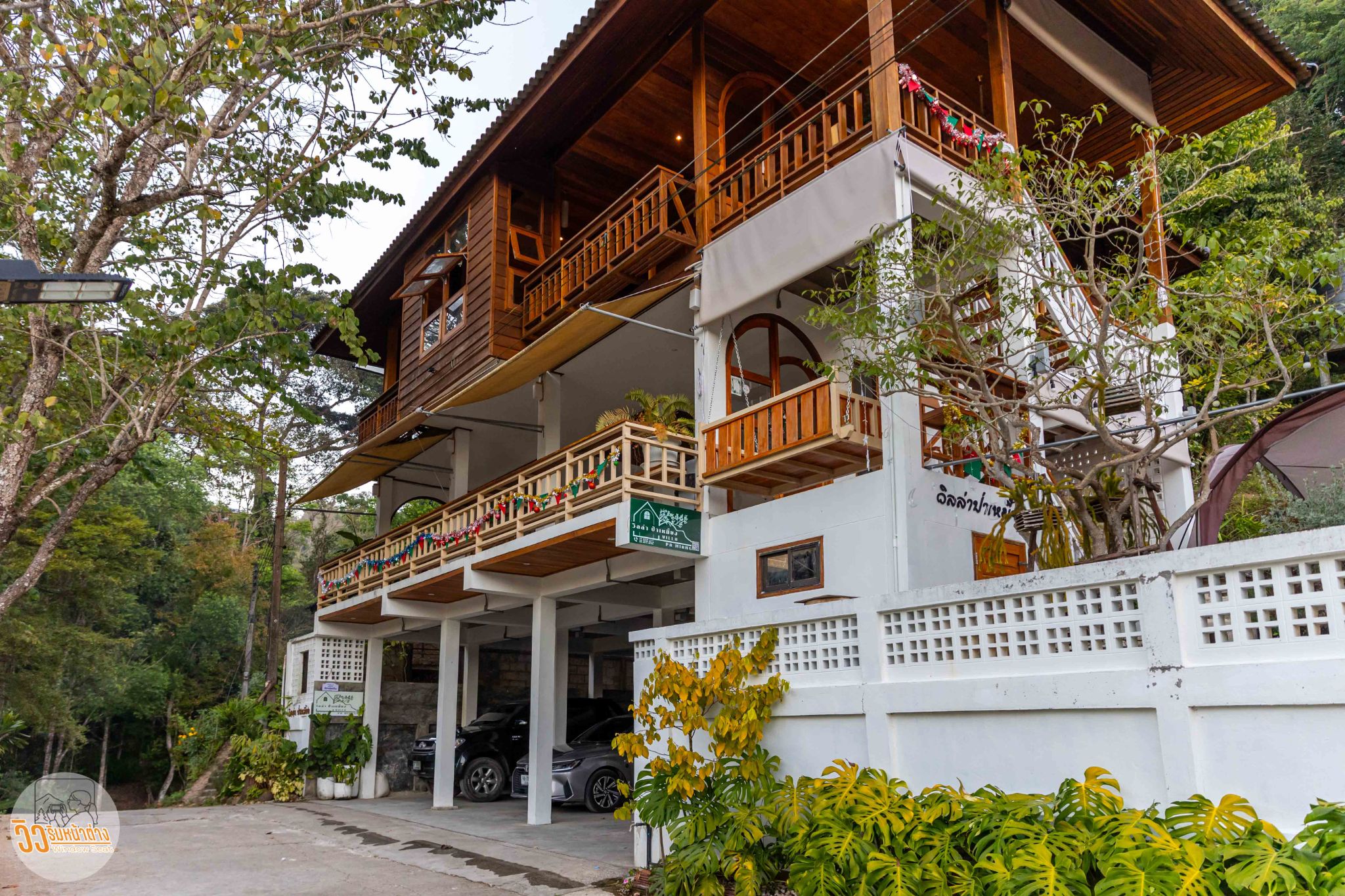 ผมเข้าพักที่ “วิลล่าป่าเหมี้ยงโฮมสเตย์” อยู่ตรงข้ามกับโรงเรียนประถมประจำหมู่บ้าน เลือกที่นี่เพราะดูสะดวกสบายที่สุดแล้ว ที่นี่มีห้องพักแค่สี่ห้องเท่านั้น ชั้นหนึ่งเป็นที่จอดรถ ชั้นสองมีห้องพักสองห้องคือ “ตะวันดาว” และ “ต้องจันทร์” ส่วนชั้นบนสุดมีห้อง “ลมใต้” และ “แสงเหนือ” ซึ่งเป็นห้องที่ผมพักคืนนี้