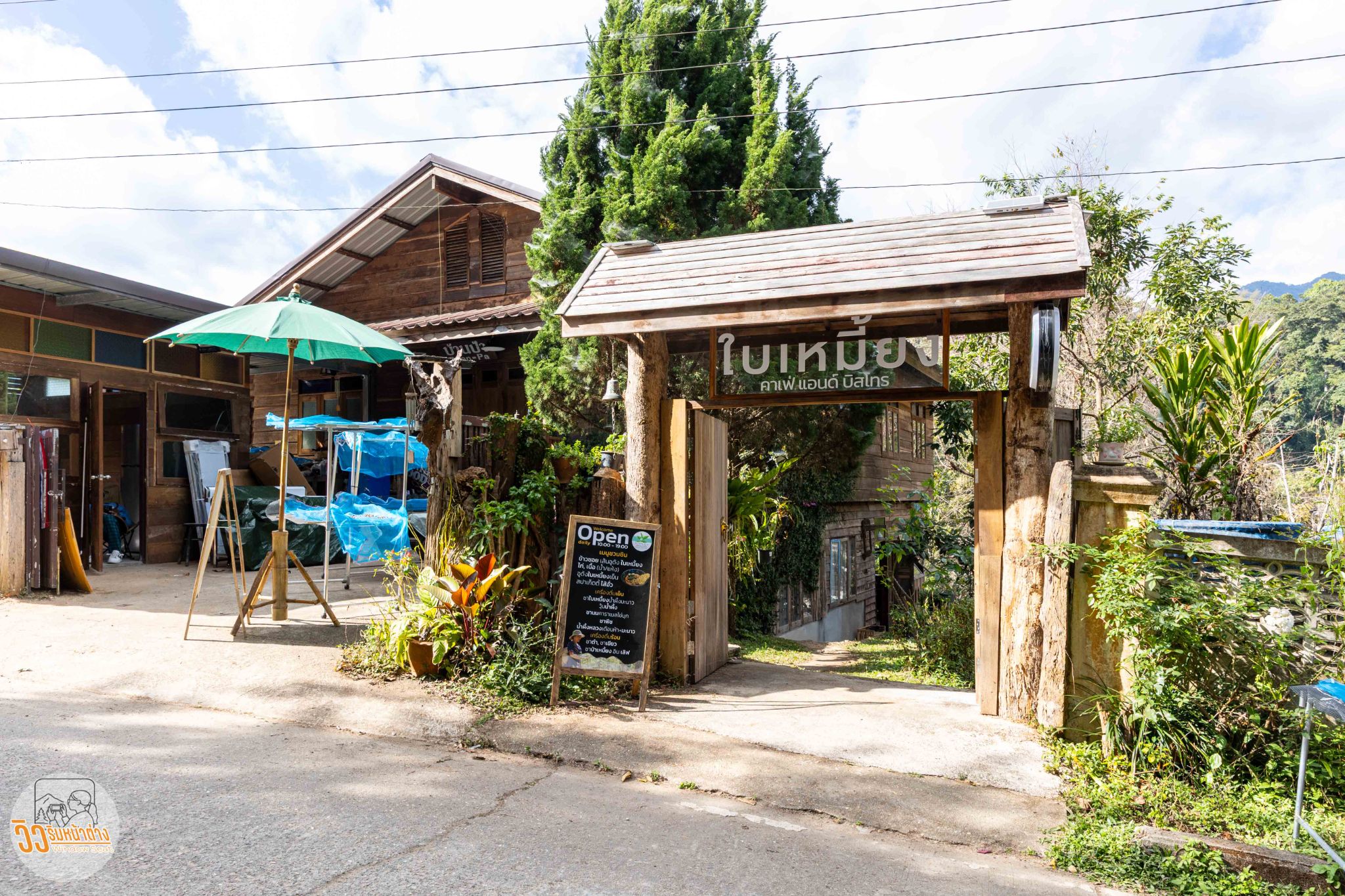 สำรวจที่พักเรียบร้อยก็ไปหาอะไรกินก่อน ผมต้องขับรถย้อนออกมาตรงทางเข้าหมู่บ้านซึ่งมีร้านอาหารชื่อ “ใบเหมี้ยง คาเฟ่แอนด์บิสโทร”