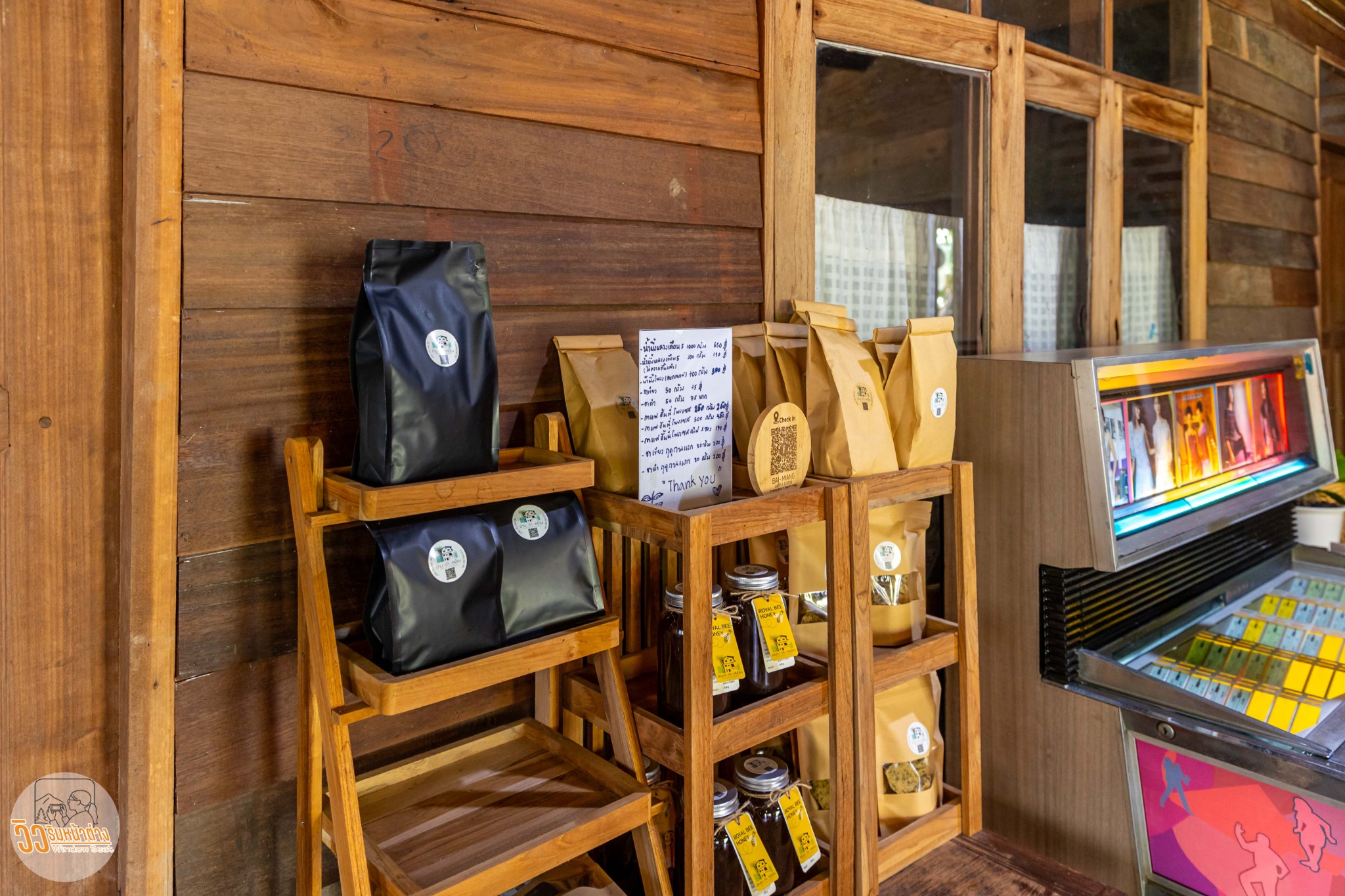 ที่ผมว่า “เจ๋ง” เลยคือมีกาแฟดริฟท์ไว้บริการฟรี เป็นเมล็ดกาแฟท้องถิ่นของป่าเหมี้ยงนี่แหละใส่ไว้ในโหล มีที่บดเมล็ดกาแฟ ที่กรองเตรียมไว้เรียบร้อย ชิมกาแฟดริฟท์สดๆได้เลย