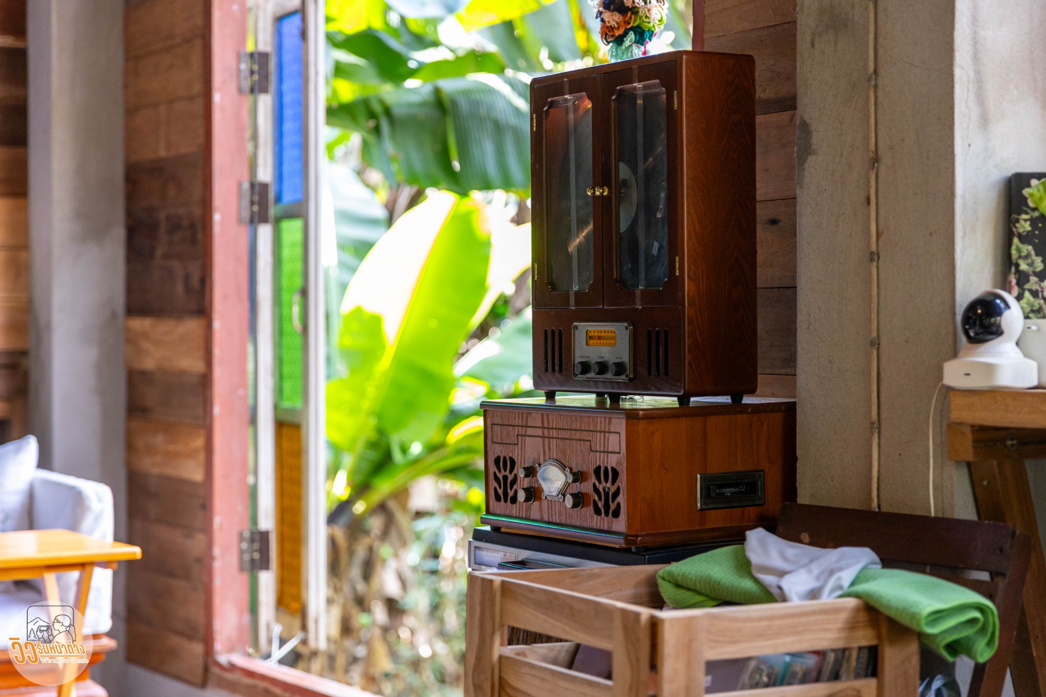 จอดรถตรงที่จอดรถที่ห่างจากตัวร้านไปประมาณยี่สิบเมตรเสร็จเรียบร้อยก็เดินมาที่ร้าน ร้านเป็นเหมือนบ้านเดินเลาะข้างบ้านไป ในร้านมีโต๊ะไม่เยอะนักครับรองรับได้ประมาณสักสิบกว่าคนก็แน่นร้านแล้ว บรรยากาศในร้านเป็นแบบย้อนยุค มีเครื่องเล่นแผ่นเสียงที่เปิดเพลงยุค 70-80 เข้ากับบรรยากาศในร้านมาก