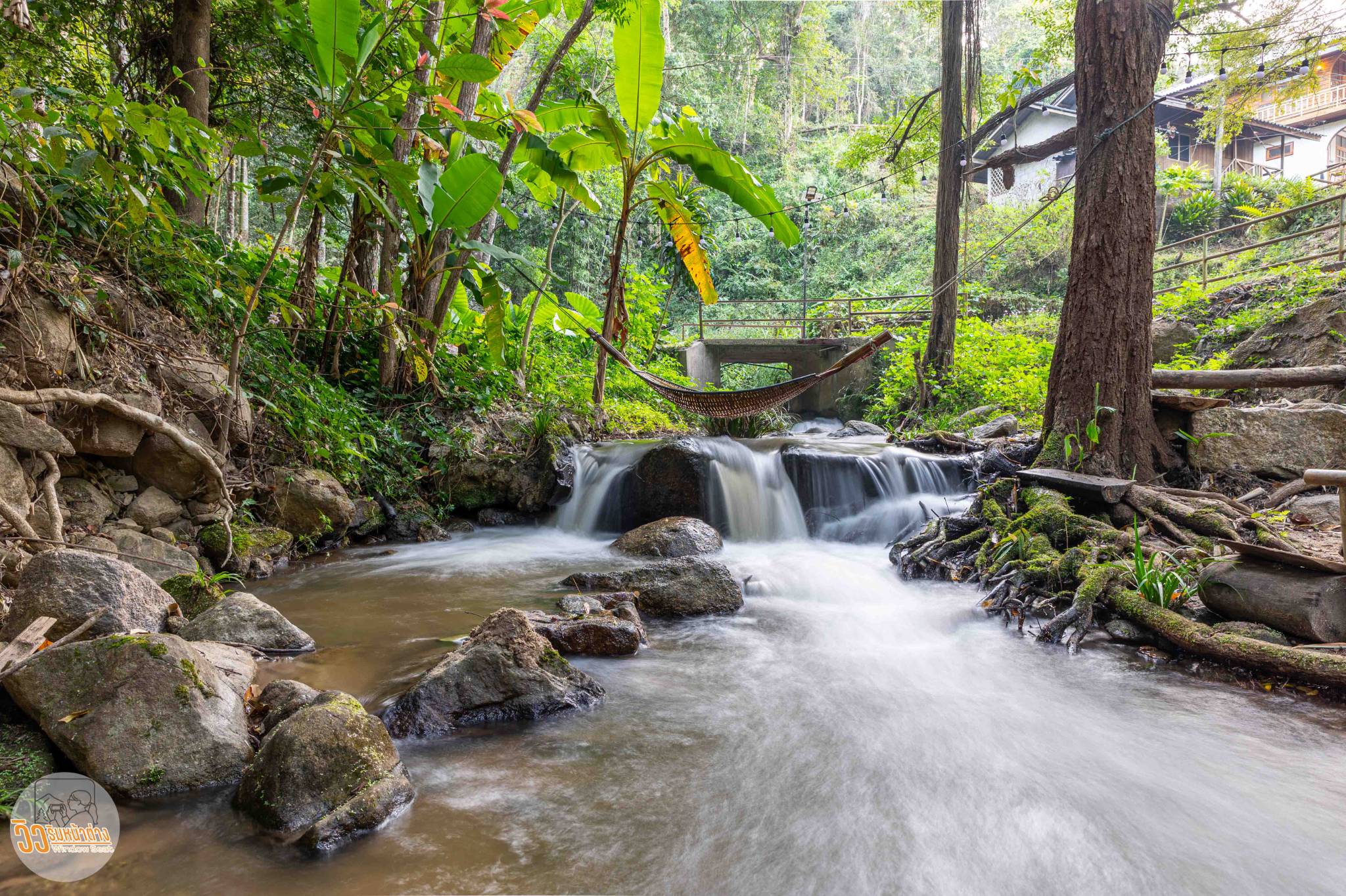 ด้านหน้าของห้องมีที่นั่งชมวิว นังฟังเสียงลำธารที่อยู่ข้างๆปนกับเสียงมอเตอร์ไซชาวบ้านที่วิ่งผ่านไปผ่านมาเป็นครั้งคราว แต่โดยรวมๆที่นี่ค่อนข้างเงียบสงบ ยิ่งเป็นวันธรรมดาที่มีผมเป็นลูกค้าเพียงห้องเดียวของที่นี่ยิ่งเงียบ หลับตาฟังเสียงธรรมชาติ...แต๊ก แต๊ก แบร๊นนนนนนน...ไม่ทันได้สงบดี นักบิดประจำหมู่บ้านก็เร่งเครื่องมอเตอร์ไซขึ้นเนินผ่านหน้าที่พักไป