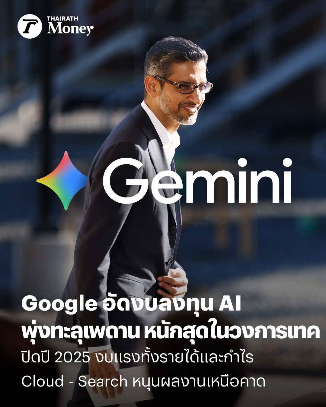 Google อัดงบลงทุน AI พุ่งทะลุเพดาน หนักสุดในวงการเทค ปิดปี 2025 งบแรงทั้งรายได้และกำไร Cloud - Search หนุนผลงานเหนือคาด