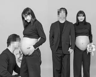 ในภาพมีความอบอุ่นมากๆ เพราะเธอและสามีถ่ายคู่กัน โดย Kim Yeon Jung สวมชุดที่โชว์ท้องน้อยๆ ของเธออย่างสวยงาม สามีของเธอยืนข้างๆ มองไปที่ท้องหรือจับมือเธอ สื่อถึงความรักที่เต็มไปด้วยความอบอุ่น 💕
