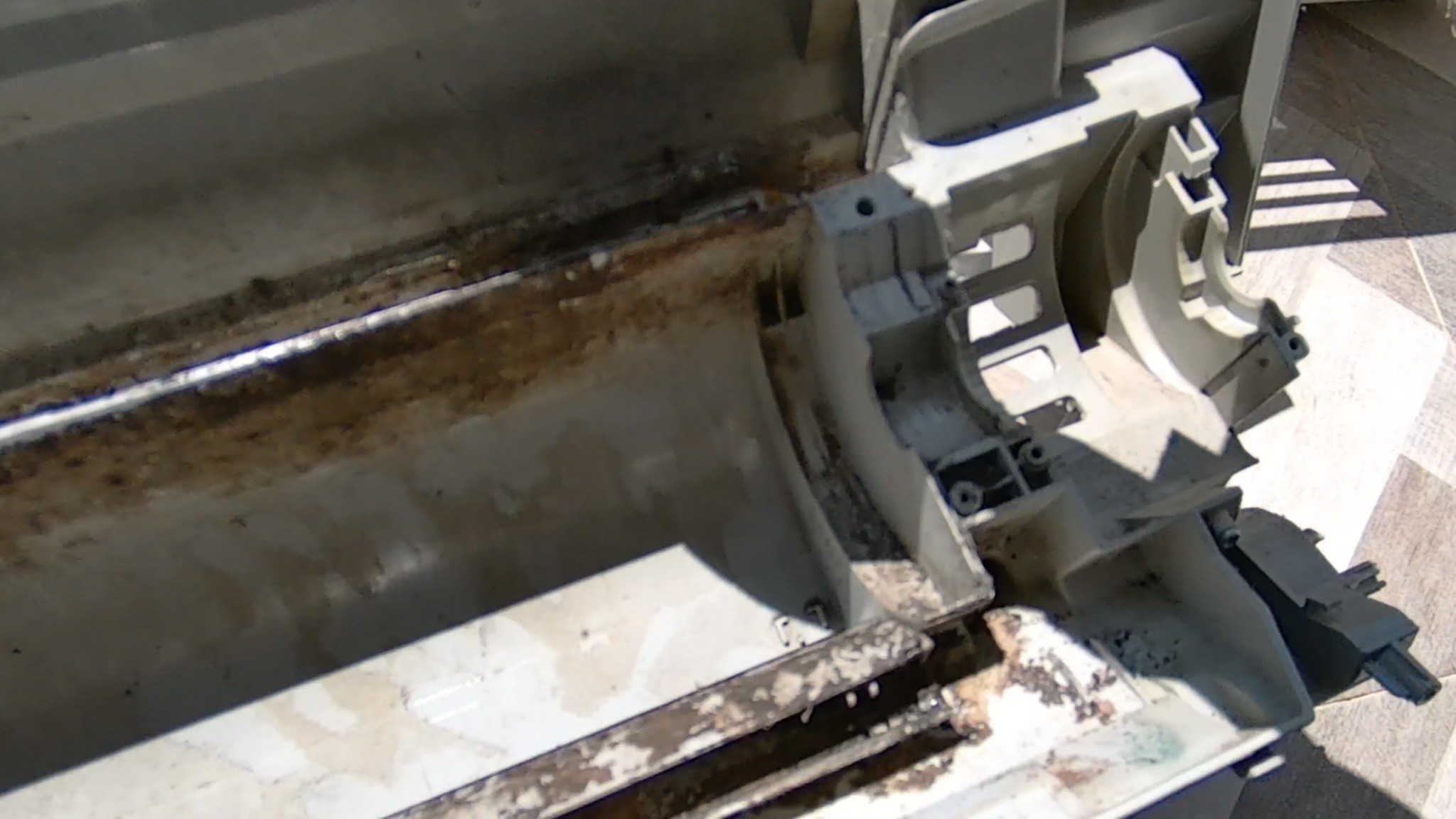 สภาพภายในจะเห็นว่ามีคราบสกปรกและเชื้อราอยู่จำนวนมาก