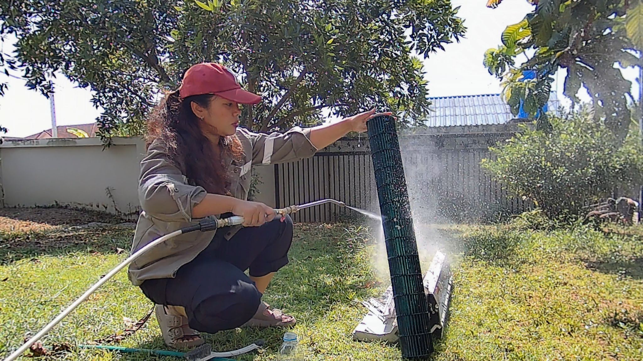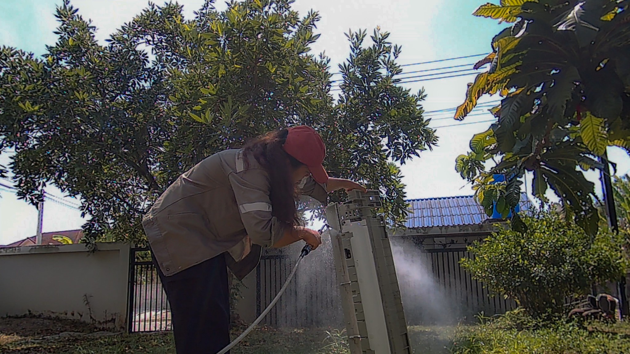 ลงน้ำยาทิ้งไว้ แล้วทำการฉีดน้ำทำความสะอาด