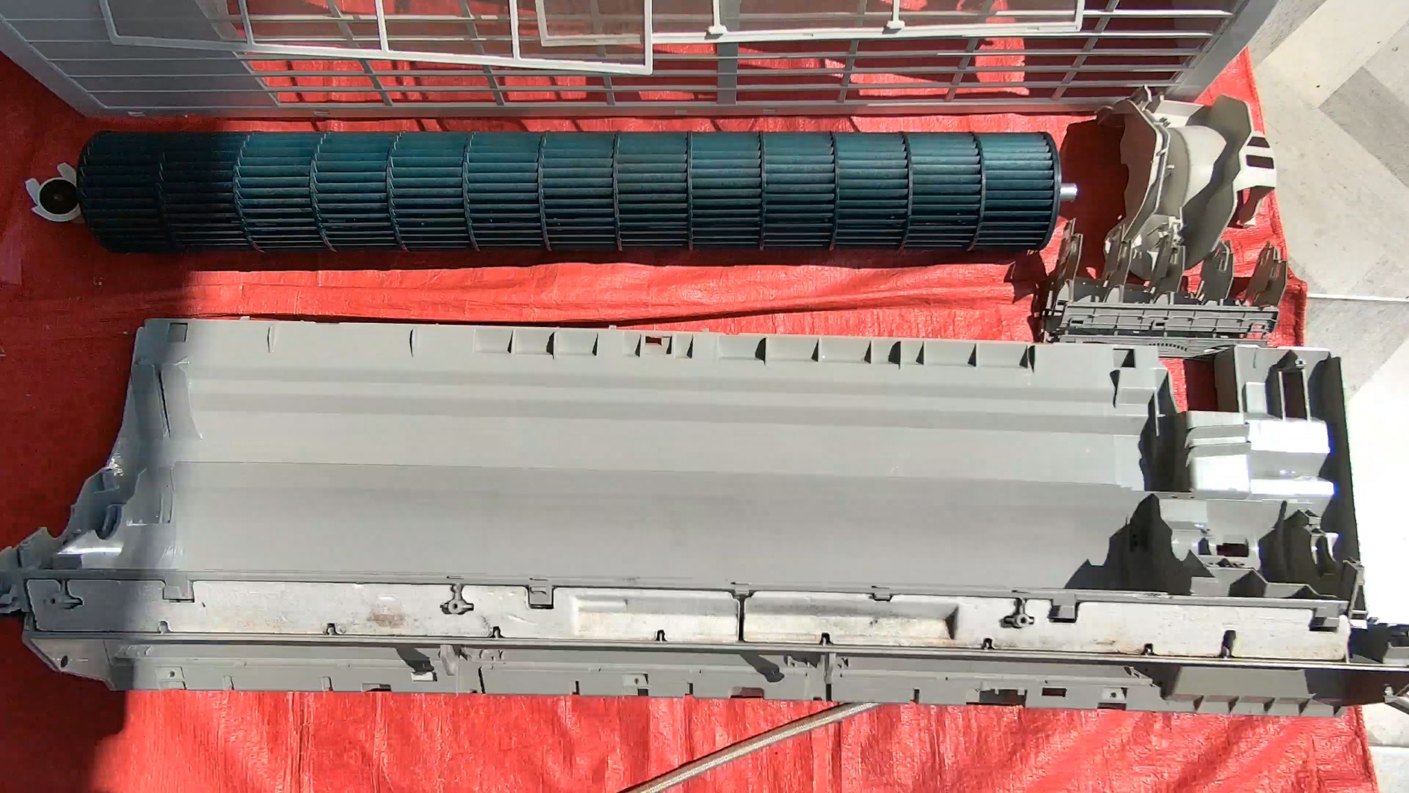 จะสังเกตุเห็นว่าแอร์ตัวนี้มีคราบเห็นได้ชัด(ด้านบน) เพราะไม่เคยถอดพัดลมออกเลย เวลาล้าง