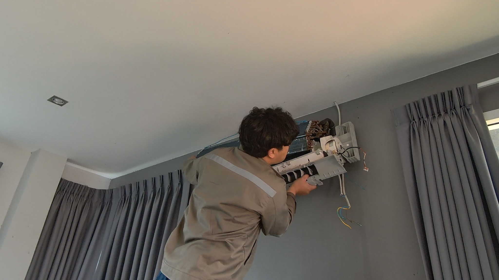 คือการถอด วงจร มอเตอร์ รวมทั้งชิ้นส่วนต่าง ๆ ของตัวแอร์ออก จนเหลือแต่คอยล์เย็น