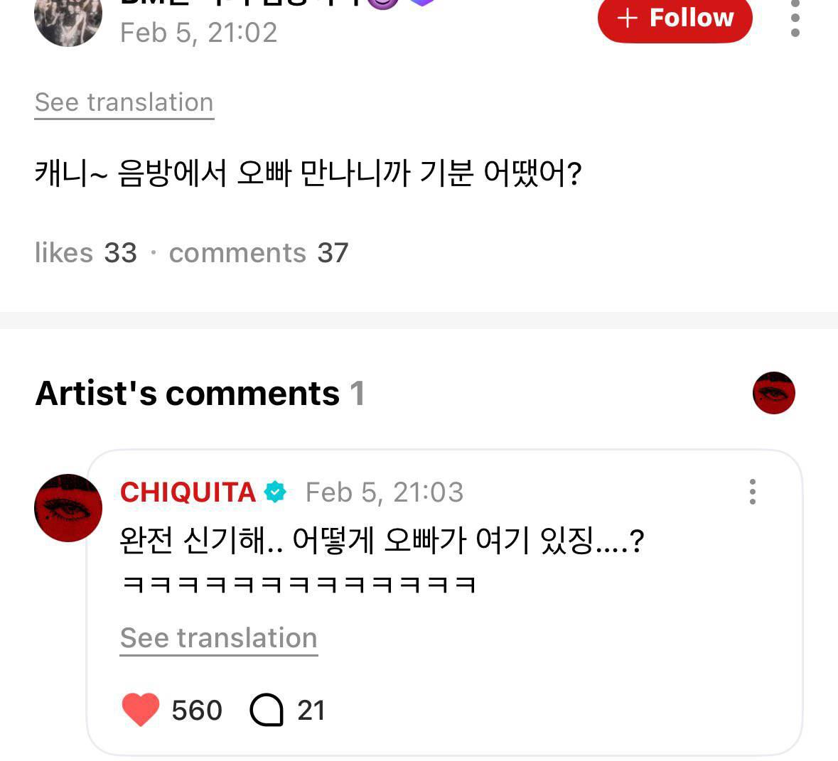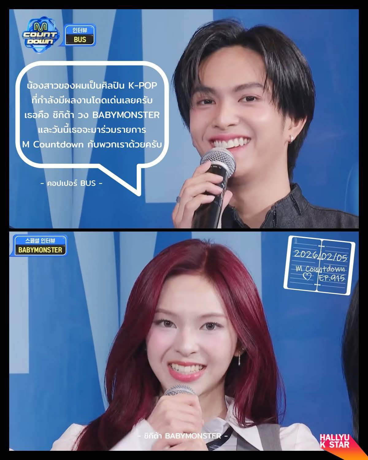 "น้องสาวของผมเป็นศิลปิน K-POP ที่กำลังมีผลงานโดดเด่นเลยครับ เธอคือ ชิกิต้า จากวง BABYMONSTER และวันนี้เธอจะมาร่วมรายการ M Countdown กับพวกเราด้วยครับ"