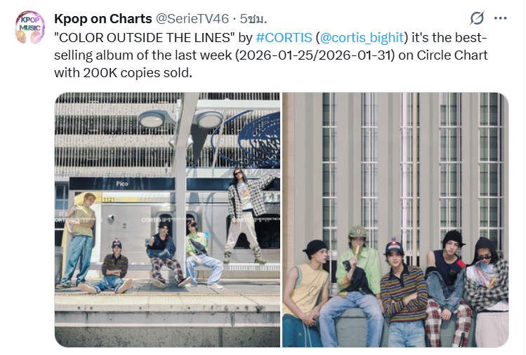 [ CORTIS ] อัลบั้มเดบิวต์ "COLOR OUTSIDE THE LINES" ทำยอดขายรวมบน Circle Chart เกิน 1.76 ล้านชุดแล้ว