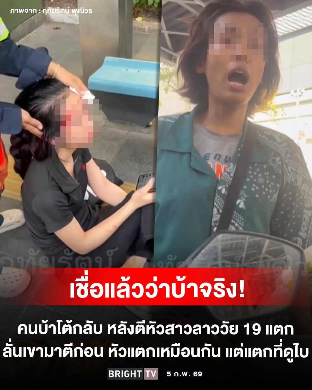 งงกันทั้งบาง หญิงชาวลาวถูกคนสติไม่ดีตีหัวแตกที่ป้ายรถเมล์ ด้านผู้ก่อเหตุบอกที่ทำไปเพราะโดนตีหัวแตกที่ดูไบ