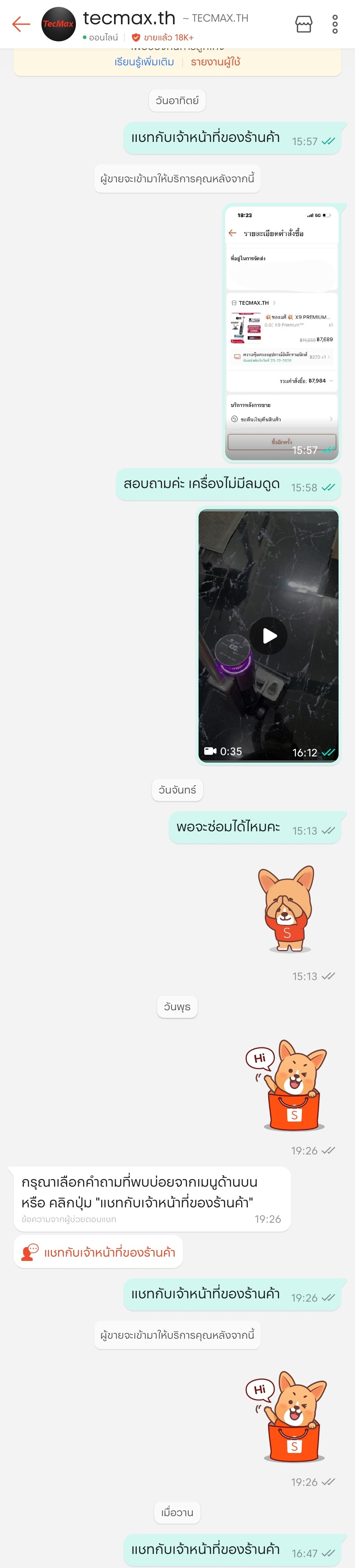 เพิ่งได้เครื่องดูดถูยี่ห้อLGมาค่ะ เป็นของขวัญปีใหม่ ไม่ได้ซื้อเอง หลังจากใช้ไปไม่ถึง 10 ครั้งพังเลยค่ะ ลมดูดไม่มี ทักไปถามร้านค้า ร้านค้าแรกๆตอบ หลังๆหาย เลยว่าจะกดคืนสินค้า หลังจากนั้นร้านไม่ตอบอีกเลย ทักไปเท่าไหร่ก็ไม่ตอบ จะกดคืนก็หมดเวลาการันตรีสินค้าของshopee แล้ว ต้องทักไปแจ้งร้านอย่างเดียว สอบถามผู้รู้ หรือ เคยเจอเคสแบบนี้หน่อยค่ะ ตอนนี้ได้แต่กดรายงานร้านนั้น แล้วก็เพิ่งมารู้ว่าของปลอมค่ะ เพราะทักไปหาศูนย์ LG แต่ทางLG ไม่ได้ผลิตสินค้ารุ่นนี้