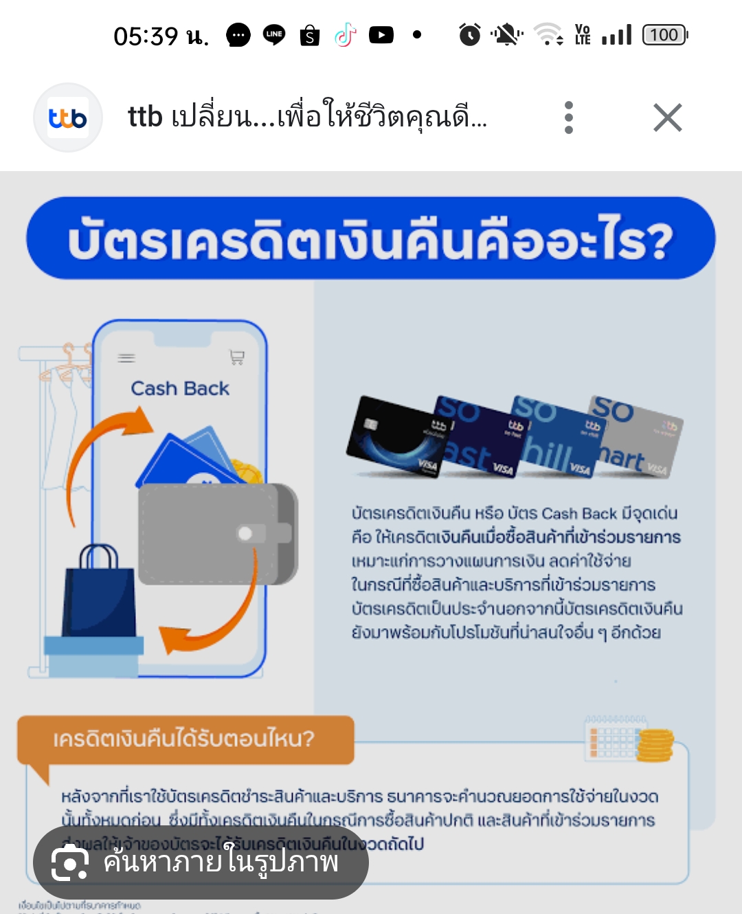 เงื่อนไขของบัตร (เราใช้ TMB So Smart) 1. 1% cashback ทุกยอดการใช้จ่าย ยกเว้น ประกัน กองทุนต่างๆ 2. ได้รับ cashback สูงสุดไม่เกิน 2,000 บาทต่อเดือน 3. หากมีการยกเลิกรายการใช้จ่ายที่ได