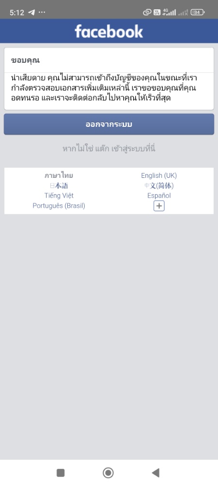 เนื่องจากเราขอเปลี่ยนชื่อเฟสบุ๊ค พอกดเปลี่ยน เฟสบุ๊คก้ขอให้ยืนยันตัวตน อัพโหลดเอกสาร เราอัพโหลดรูปบัตรประชาชนไป จากวันนั้น สค 68 จนตอนนี้ กพ 69 แล้ว ยังเข้าไม่ได้เลย ลอคอินไปก้เข้ามาสุดที่หน้านี้