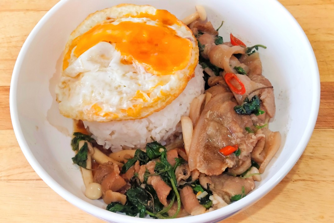 ข้าวกะเพราหมูสามชั้น