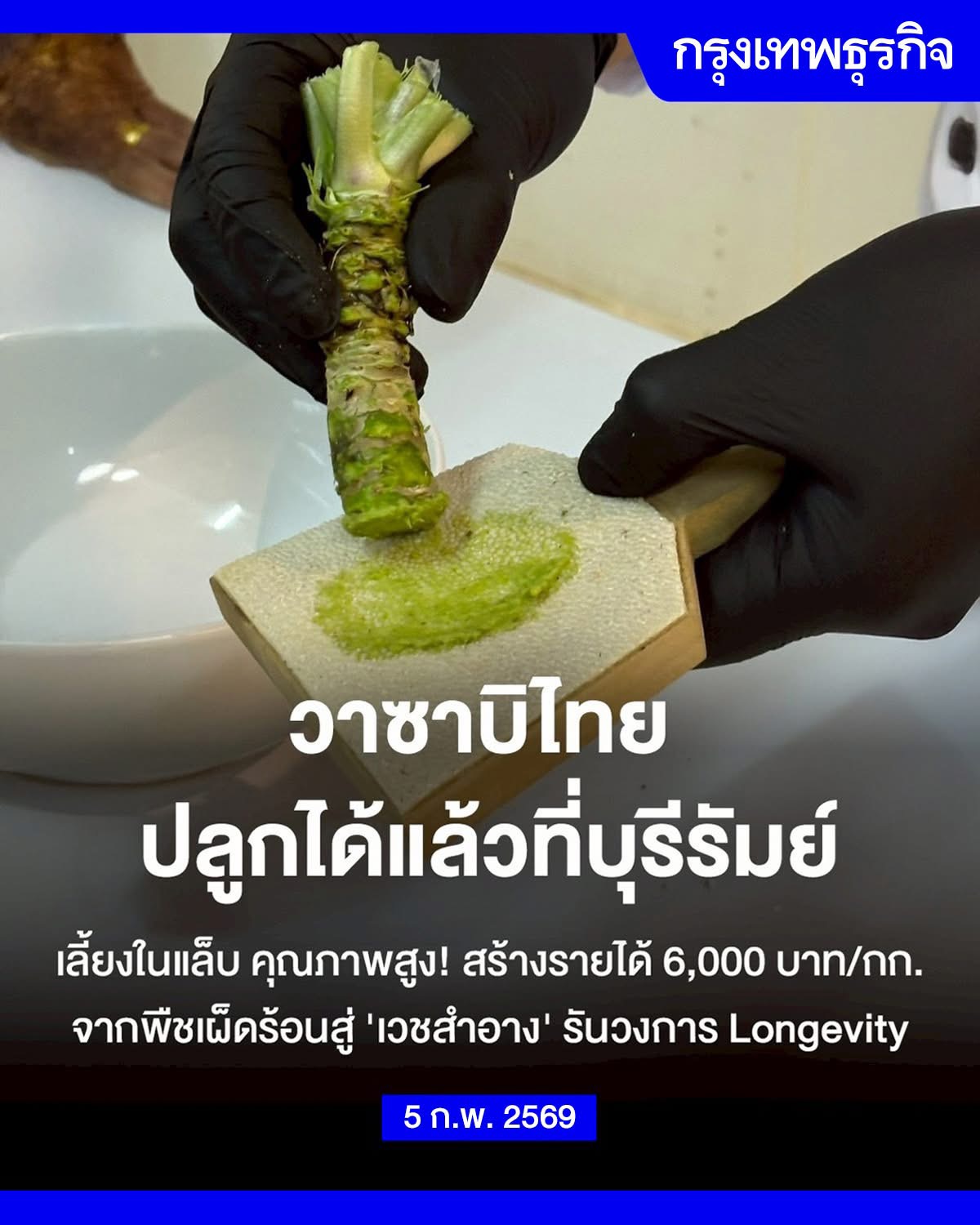 ปัจจุบันสามารถสร้างมูลค่าจาก “เหง้าสด” ได้สูงถึง 4,000 – 6,000 บาทต่อกิโลกรัม ส่งตรงสู่ร้านอาหารชั้นนำ เป็น“Wasabi Food Lab” ขยายผลจากห้องวิจัย นำร่องสู่การสเกลโมเดล 12 ห้องแล็บ เพื่อรองรับการเติบโตของ Wellness Tourism และอุตสาหกรรม Longevity Hub ที่ไทยกำลังเร่งเครื่องอย่างเต็มสูบ