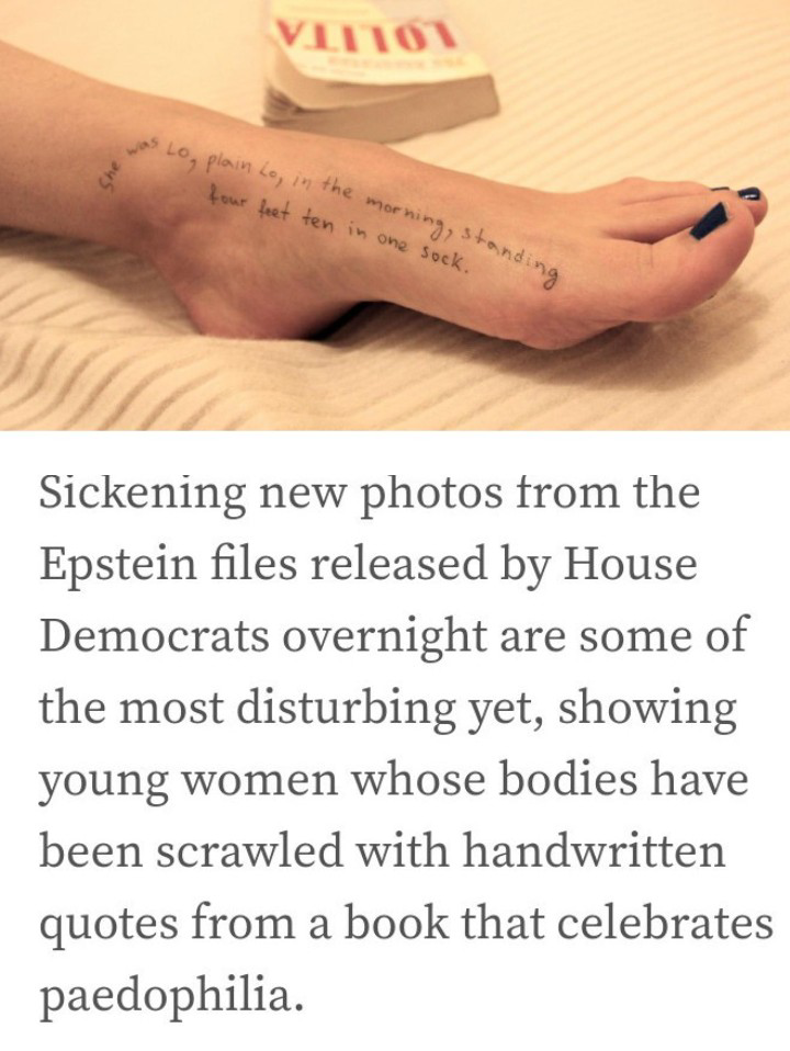 ภาพถ่ายใหม่ที่น่าสะอิดสะเอียนจากแฟ้มคดีของเอปสไตน์ ซึ่งพรรคเดโมแครตในสภาผู้แทนราษฎรเผยแพร่เมื่อคืนนี้ เป็นภาพที่น่าตกใจที่สุดเท่าที่เคยมีมา โดยแสดงให้เห็นหญิงสาวหลายคนที่มีร่างกายถูกเขียนด้วยลายมือจากหนังสือที่ยกย่องการล่วงละเมิดทางเพศเด็ก