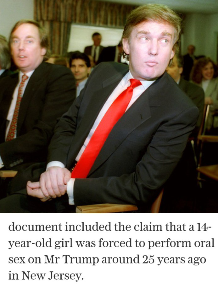 หรือ ทรัมป์ ให้เด็ก 14 ใช้ปากให้เมื่อ 25 ปีก่อน + ทรัมป์ร่วมประมูลซื้อเด็ก (ยังไม่มีหลักฐานยืนยัน เป็นเพียงการเขียนบันทึกจาก file ของ เอฟสตีนส์)