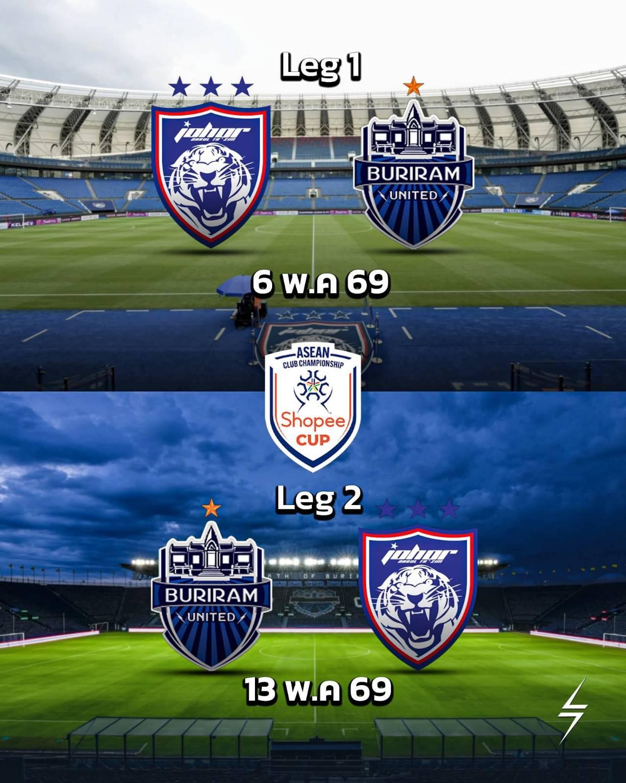โชปี้คัพ นัดต่อไป รอบรองชนะเลิศ เดือดบุรีรัมย์ ดวล ยะโฮร์ ดารุล ทักซิม