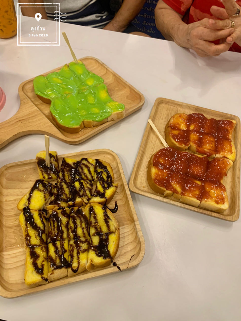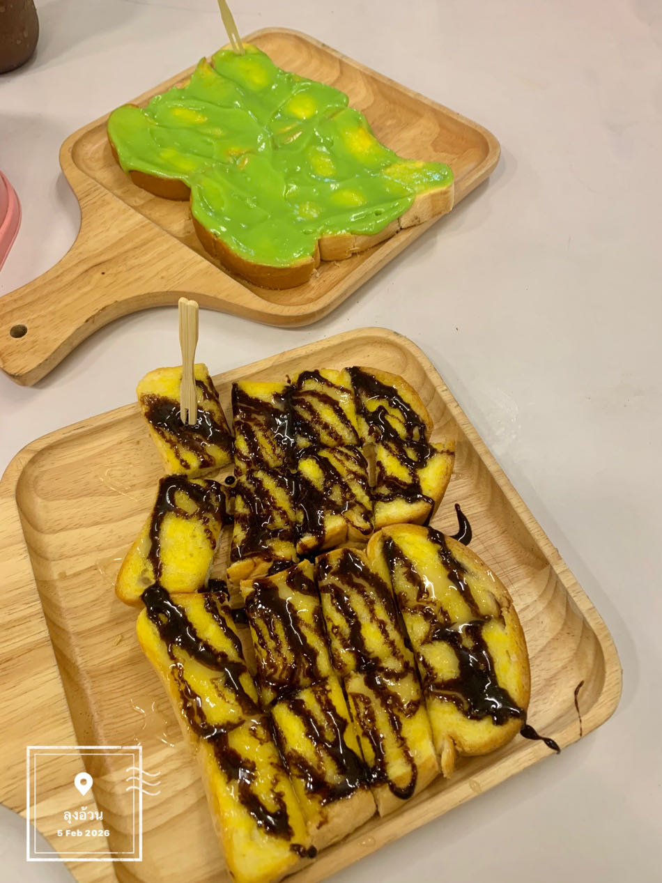 ขนมปังปิ้งเนยนมสังขยาใบเตยช็อคโกแลต