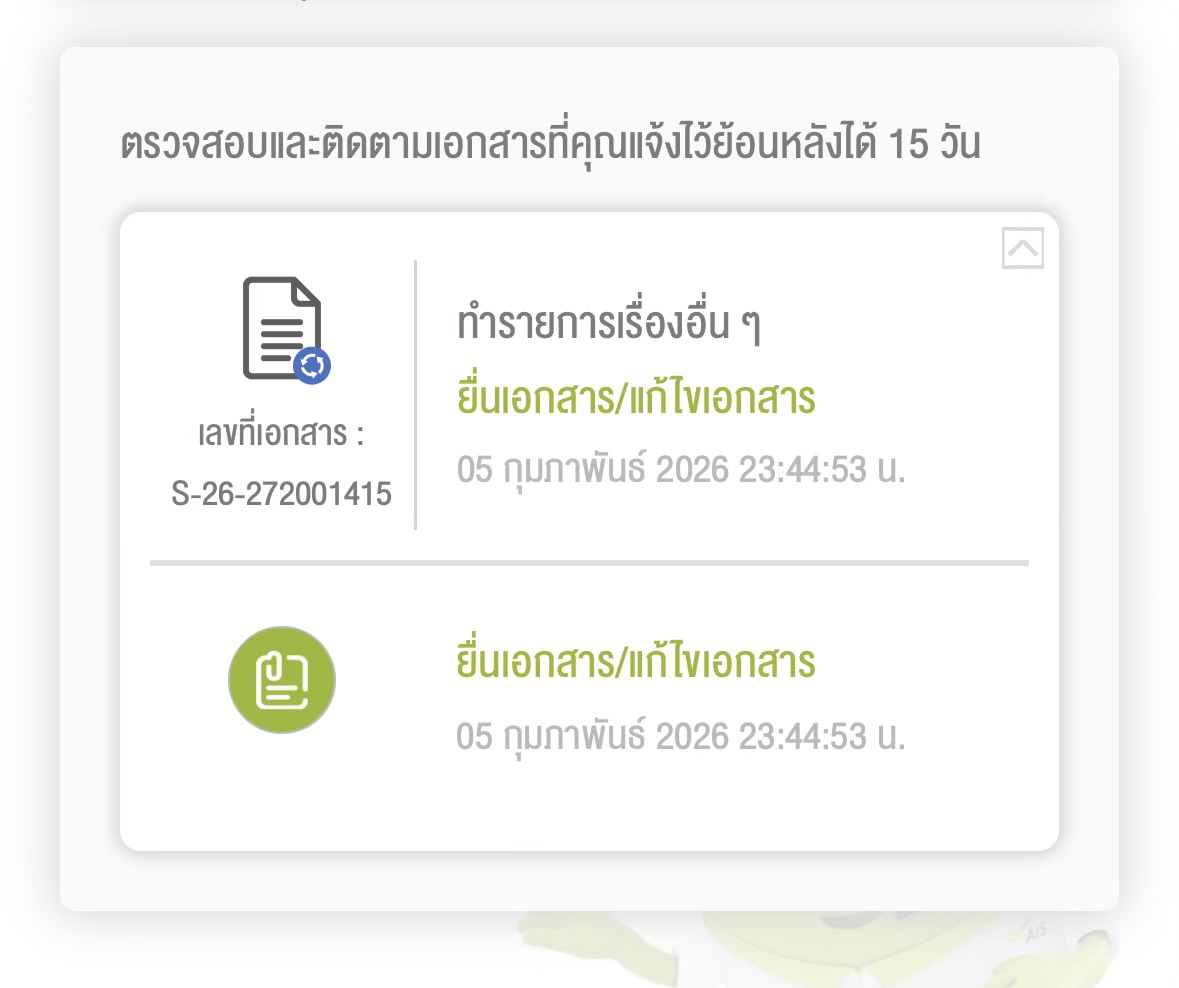 ติดตามผลการย้ายค่ายและร้องเรียนคุณภาพบริการ: เลขที่เอกสาร S-26-272001415 (ยอด 0.00 บาท)