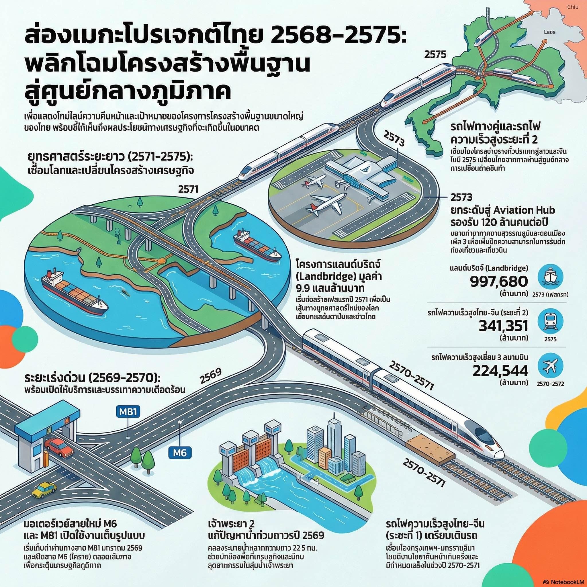 เปิดแผนเมกะโปรเจกต์ไทย สู่ปี 2575: เดิมพันงบล้านล้าน เปลี่ยนโครงสร้างเศรษฐกิจสู่ศูนย์กลางภูมิภาค