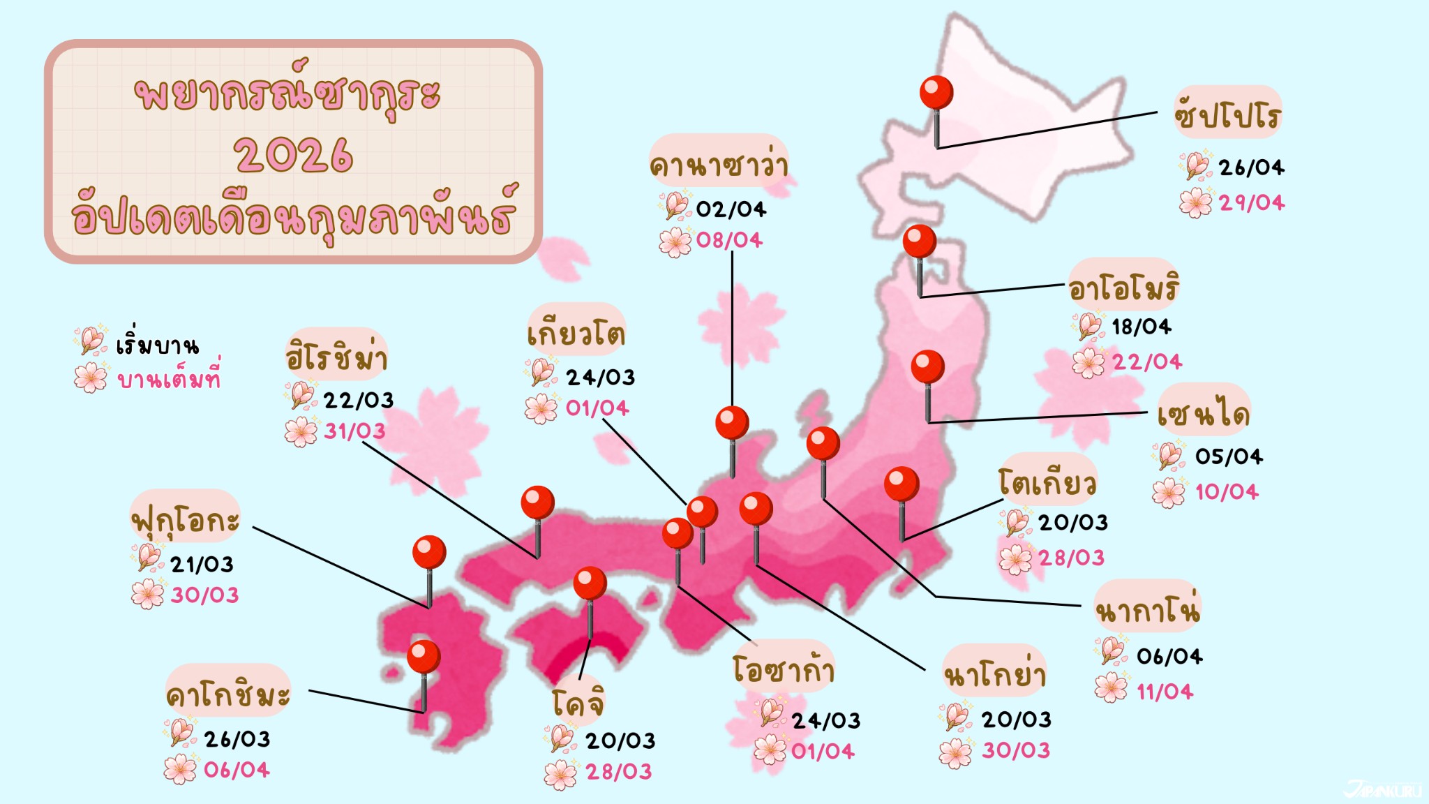 เลยอยากแวะมาอัปเดตทุกคนค่า เผื่อใครกำลังแพลนจะมาดูซากุระ