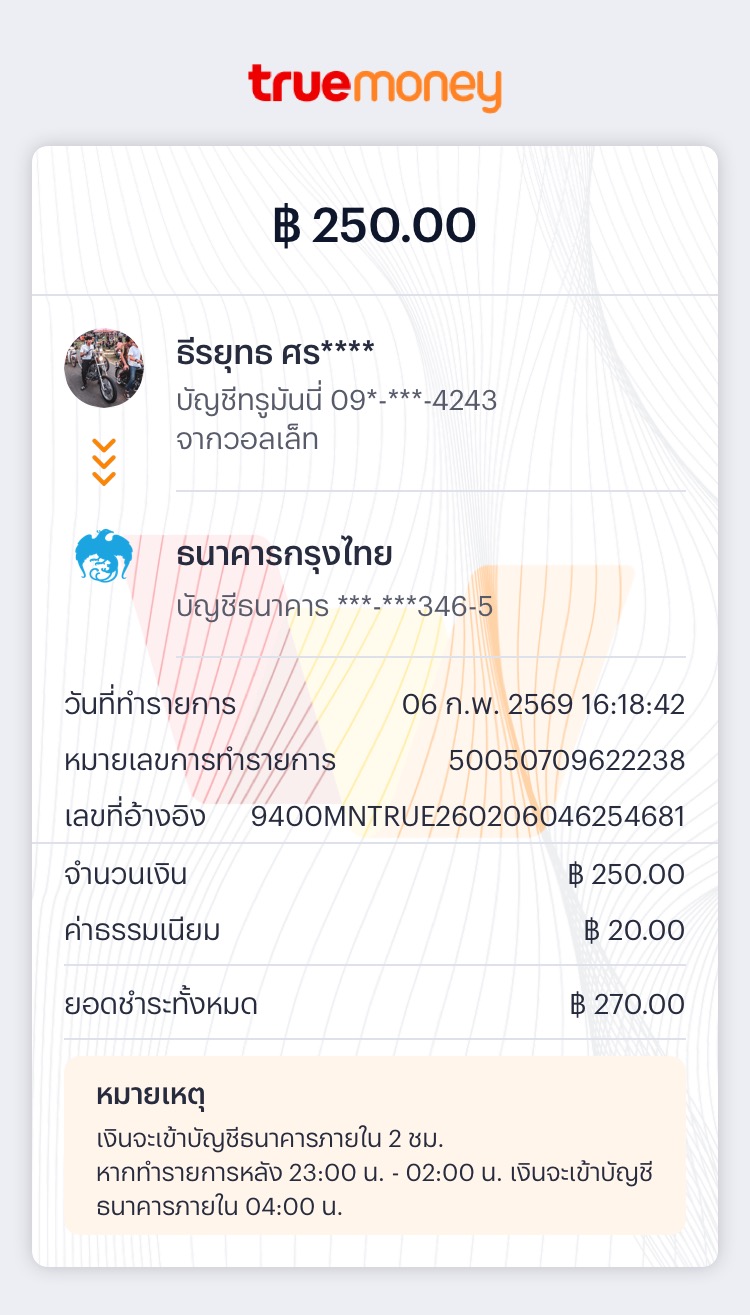 มีคนเข้าโอนเงินเข้ามาผิด ในแอพ ทรูวอ