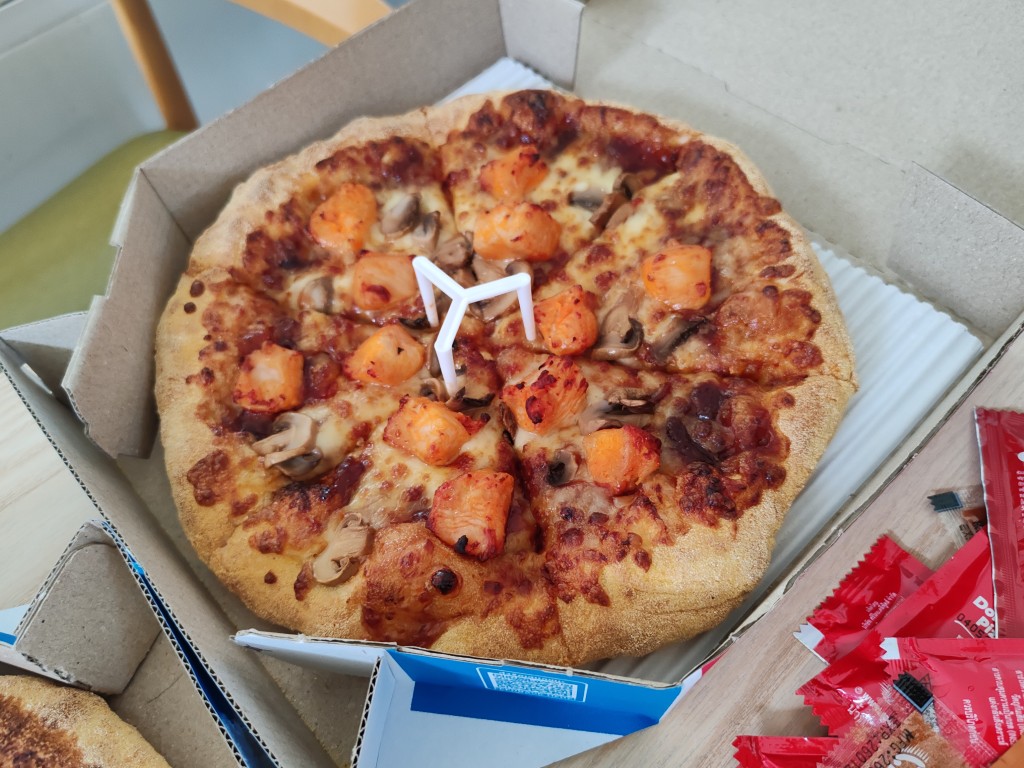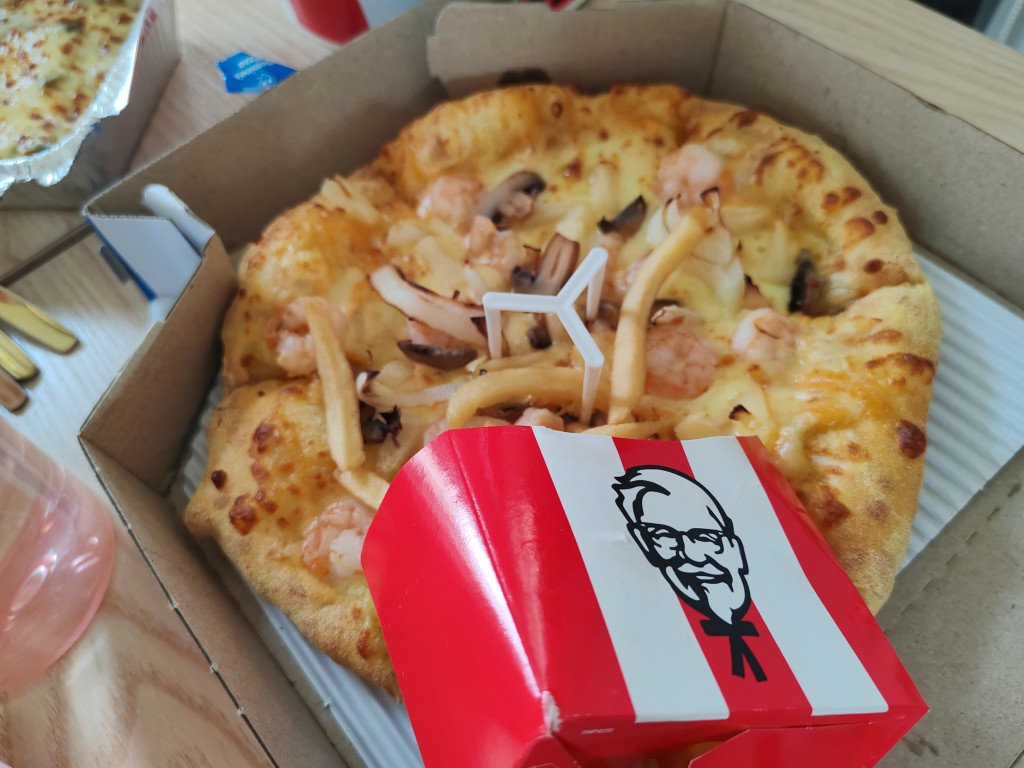 วันนี้ที่ออฟฟิตตกลงกันว่าจะสั่ง KFC กับ Pizza มากินเป็นมื้อเที่ยงเพื่อส่งท้ายการทำงานวันสุดท้ายของปีนี้ เลยสั่งออนไลน์ผ่านเว็บไซต์ทั้งสองอย่าง ระหว่างรอก็นั่งทำงานไปเรื่อยๆ ซักพักใหญ่ๆ เวลา 11.08 น. ม
