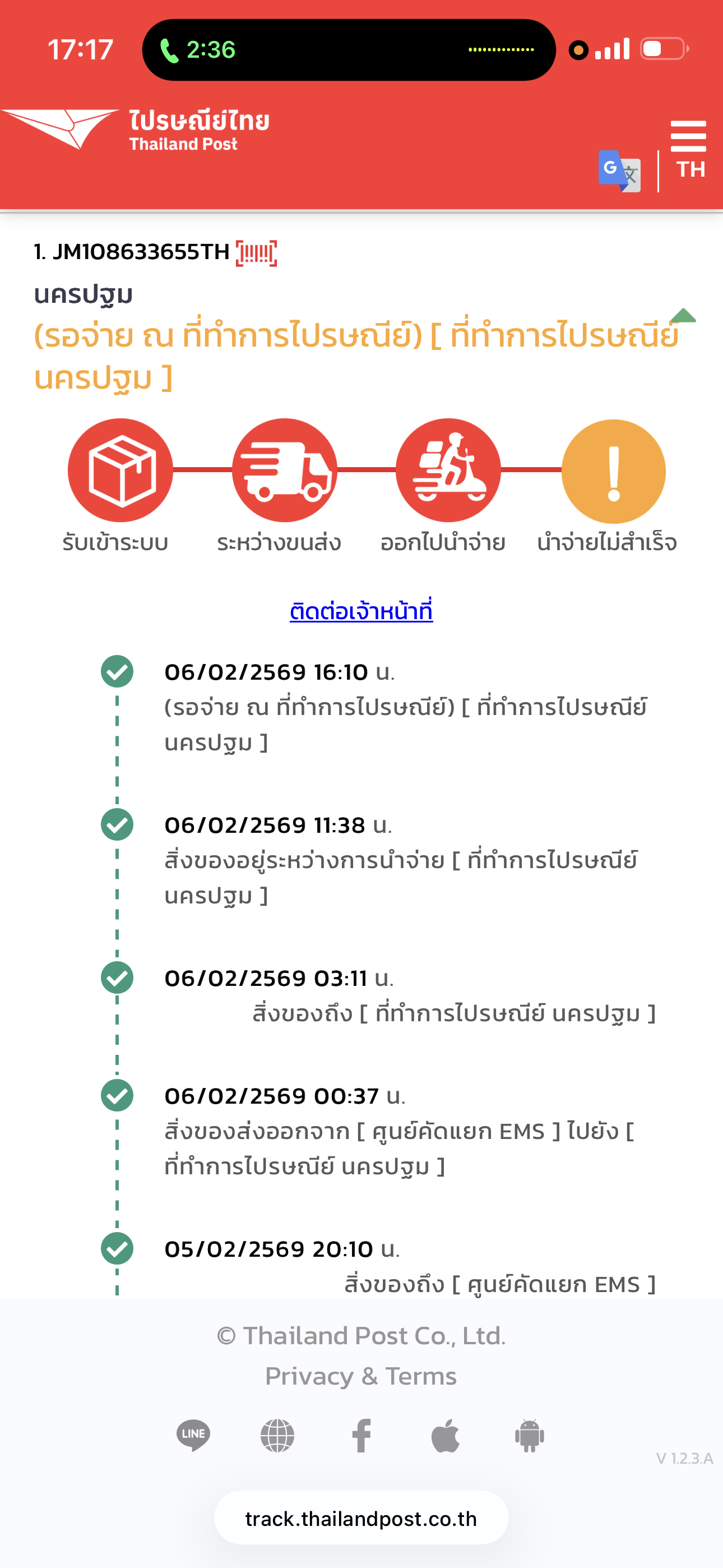 ไปรษณีย์ไทยขึ้นว่าจำหน่ายสำเร็จแต่ยังไม่ได้ของ??