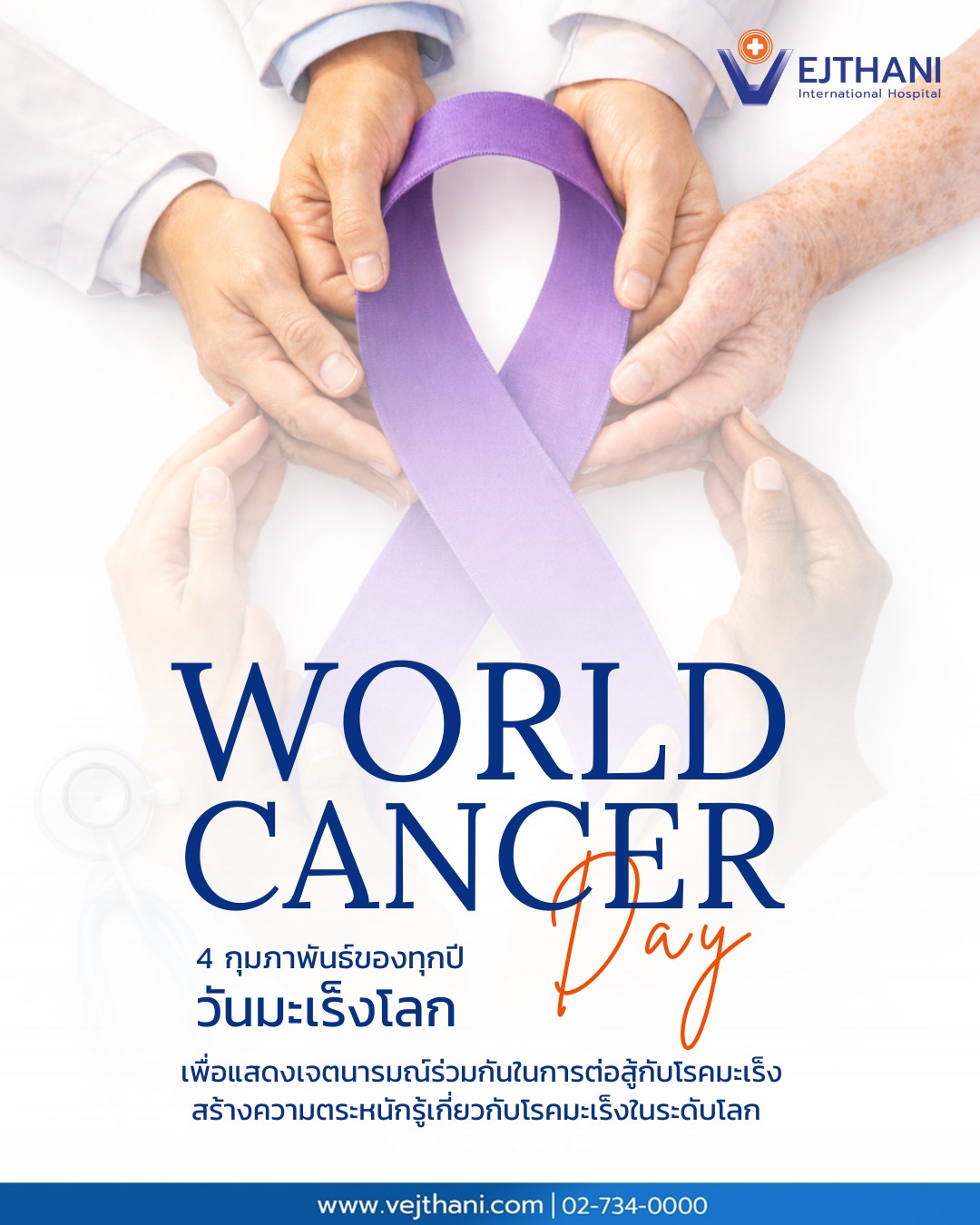 วันมะเร็งโลก เป็นสัญลักษณ์ของการรวมพลังระดับโลกในการต่อสู้กับโรคมะเร็ง แต่การสร้างความตระหนักรู้และการดูแลสุขภาพเชิงป้องกันควรเกิดขึ้นอย่างต่อเนื่องในทุกวัน ด้วยแนวโน้มจำนวนผู้ป่วยที่เพิ่มขึ้นทั้งในระดับโลกและในประเทศไทย การตรวจคัดกรองตั้งแต่ระยะแรกและการเข้าถึงการรักษาที่เหมาะสมจึงมีบทบาทสำคัญในการเพิ่มโอกาสทางการแพทย์และคุณภาพชีวิตของผู้ป่วย