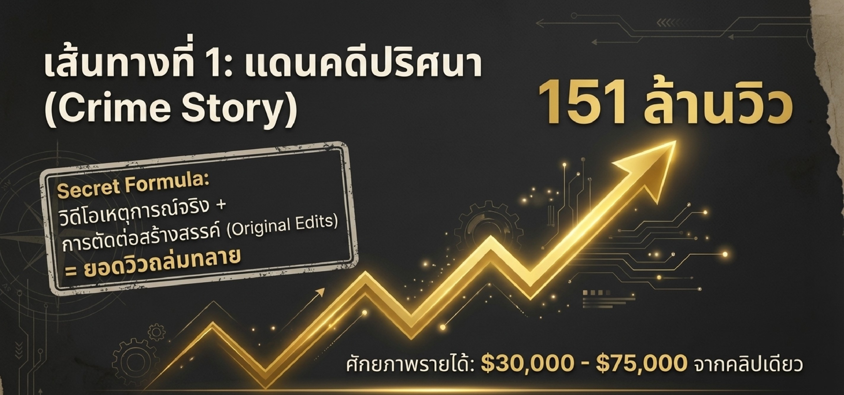 ที่สำคัญคือคลิปเหล่านี้มีความยาวเกิน 1 นาที ซึ่งเป็นกฎเหล็กของการรับรายได้จาก TikTok Creator Rewards Program ลองจินตนาการดูนะครับว่าถ้าคลิปที่มีคนดู 151 ล้านวิวนี้ มีค่า RPM หรือรายได้ต่อ 1000 วิว อยู่ที่ประมาณ 0.50 ดอลลาร์ คลิปเดียวนี้อาจทำเงินได้สูงถึง 75,000 ดอลลาร์เลยทีเดียว หรือต่อให้คิดแบบเรทต่ำ ๆ ที่ 0.20 ดอลลาร์ ก็ยังทำเงินได้ถึง 30,000 ดอลลาร์ ซึ่งถือเป็นรายได้ที่สูงมากสำหรับการทำคลิปวิดีโอเพียงคลิปเดียว นอกจากนี้หากผู้ชมส่วนใหญ่มาจากประเทศที่มีกำลังซื้อสูงอย่างสหรัฐอเมริกา รายได้ก็อาจจะสูงกว่าที่คำนวณไว้เสียอีก ดังนั้นใครที่ชอบเรื่องราวลึกลับ การสืบสวนสอบสวน หรือคดีดังต่าง ๆ การนำมาเล่าใหม่ในรูปแบบของการตัดต่อที่น่าสนใจ จึงเป็นช่องทางที่น่าลงทุนลงแรงอย่างยิ่ง โดยเราสามารถเข้าไปดูตัวอย่างจากช่องที่ประสบความสำเร็จเพื่อศึกษาแนวทางการเล่าเรื่อง การตัดต่อ และการวางพล็อตให้น่าติดตาม เพื่อนำมาปรับใช้กับช่องของตัวเองได้
