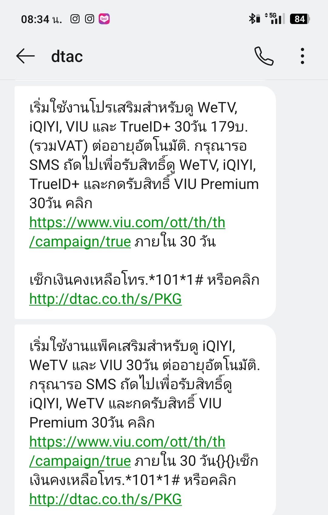 ใช้เบอร์ dtac สมัคร package asian combo 365 วัน ได้รับ sms 2 ข้อความ เป็น link ของ wetv iqiyi และเข้าใช้งาน iqiyi wetv ได้ปกติ โดยใช้ เบอร์ true id ที่สมัคร แต่ตอน login viu มีแต่ให้ใส่ email ต้องด