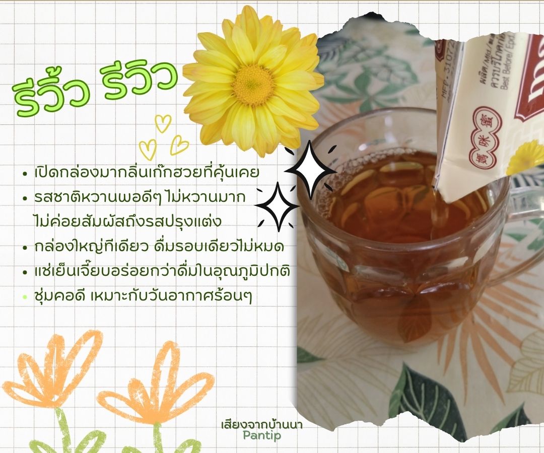 มีกลิ่นเก็กฮวยหอมๆ สัมผัสความหวานเบาๆแบบไม่หวานเจี๊ยบ